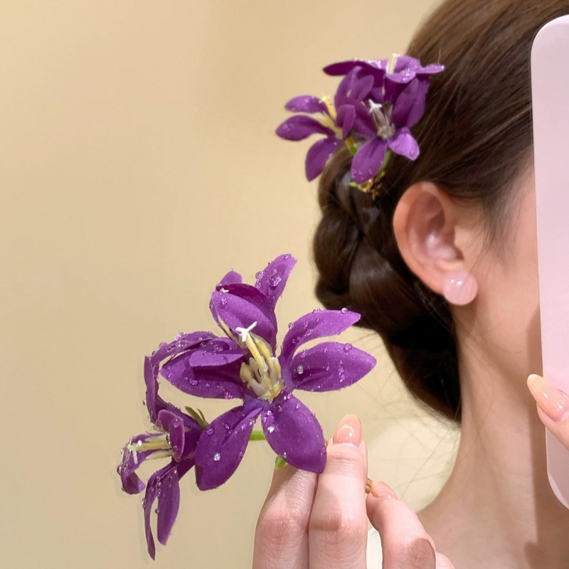 purple super fairy lily flower barrettes