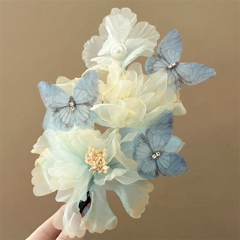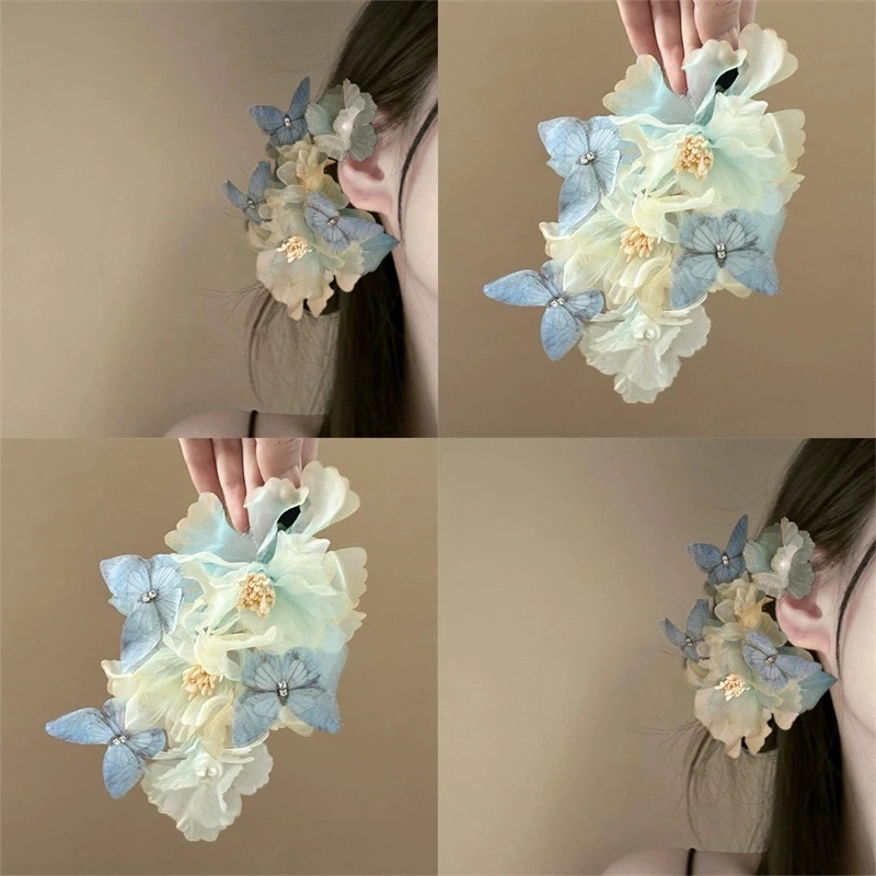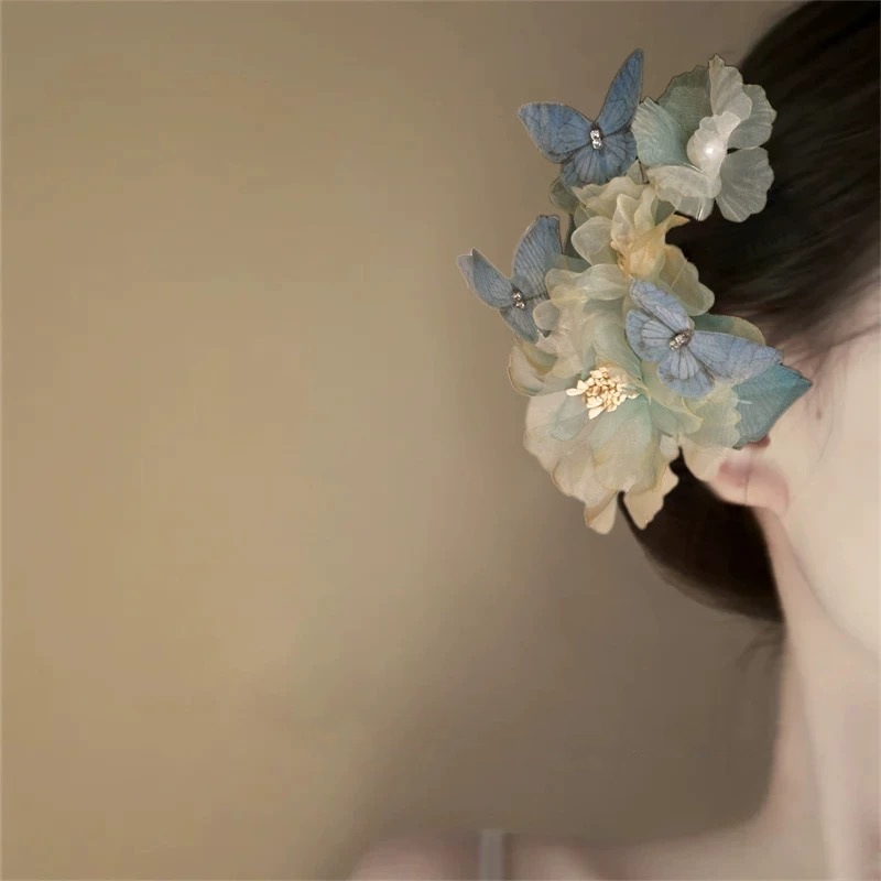 gradient blue chiffon branch flower barrettes