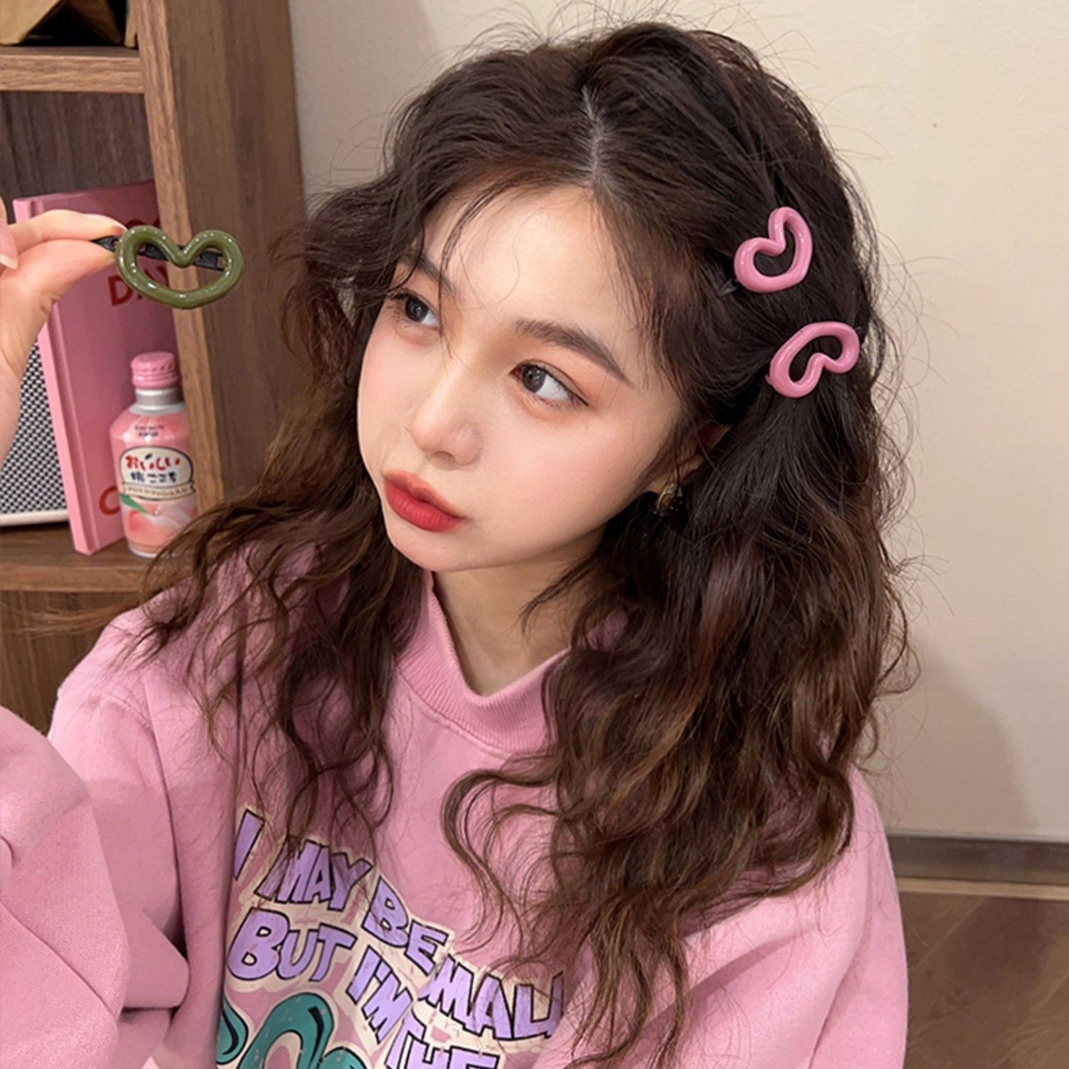 love heart morandi hair clip-mixed color random hair