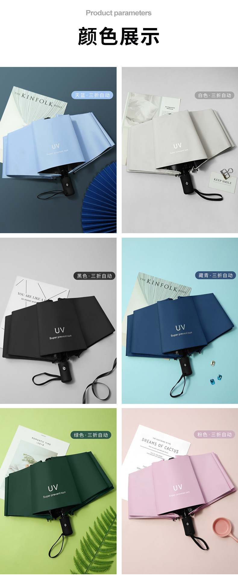 uv sky blue eight-rib black frame [manual type]
