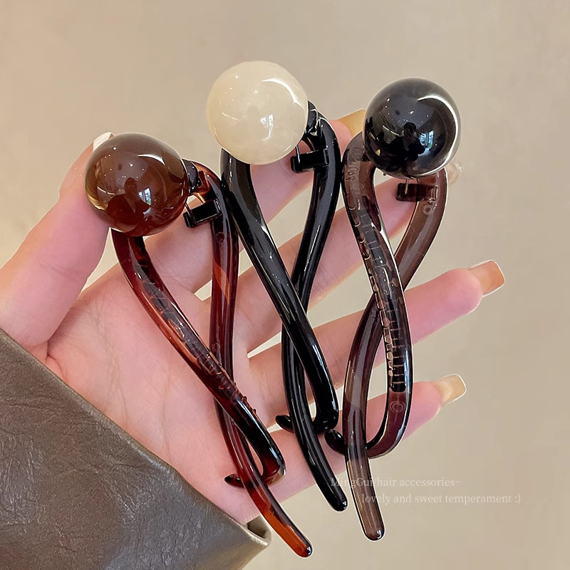 1# [tea black] pearl banana clip