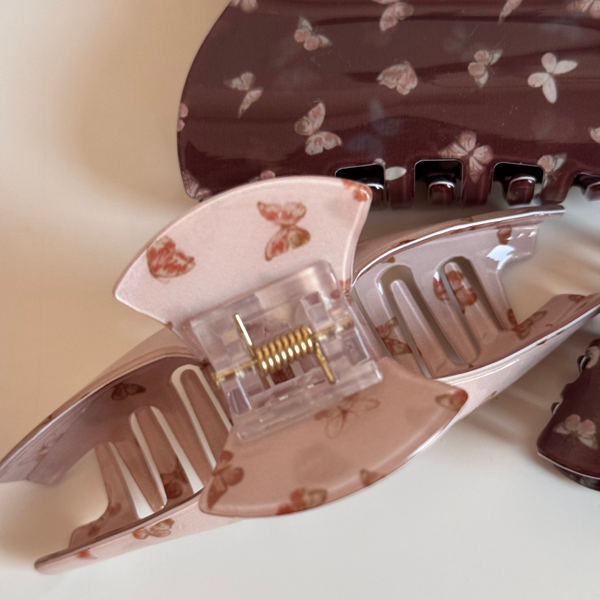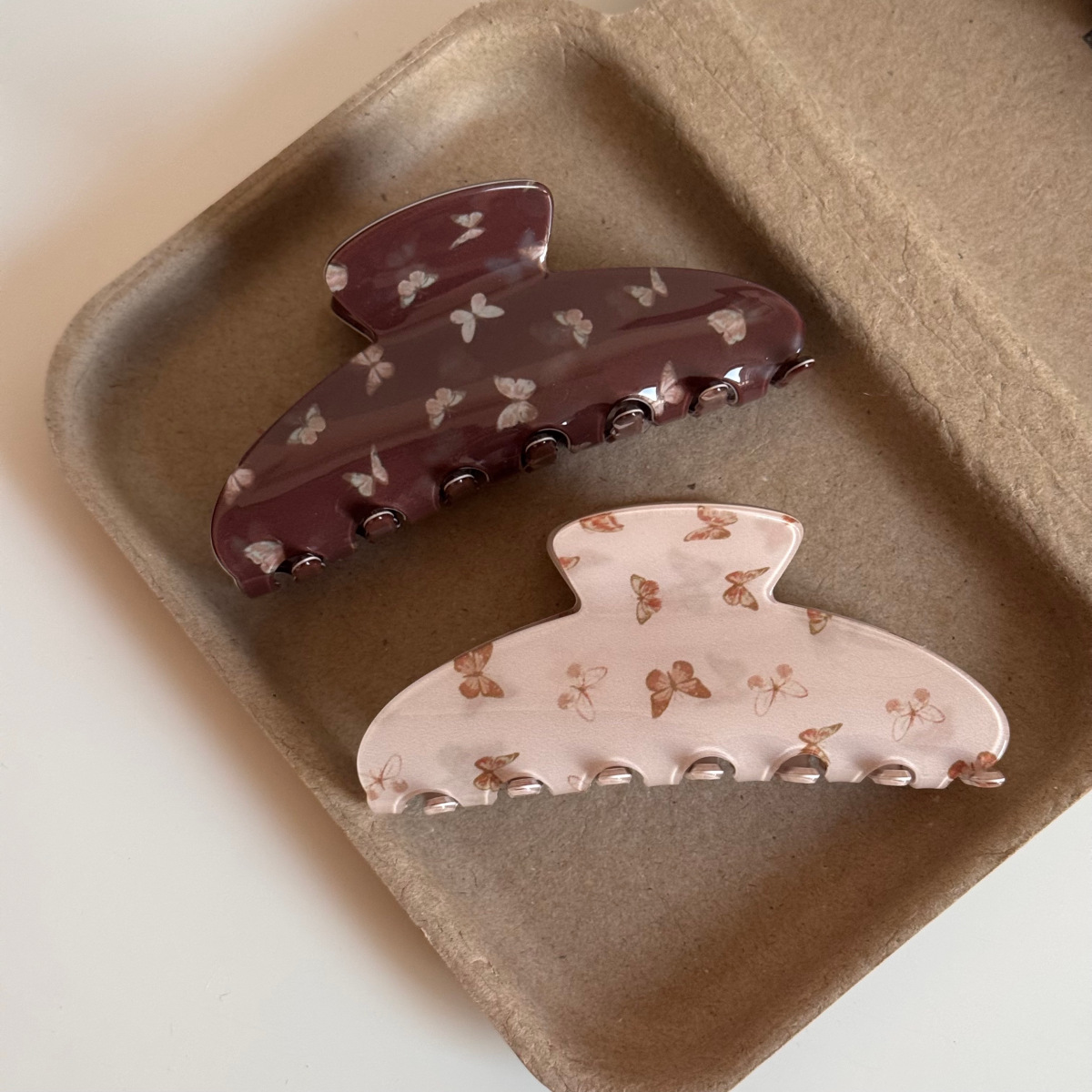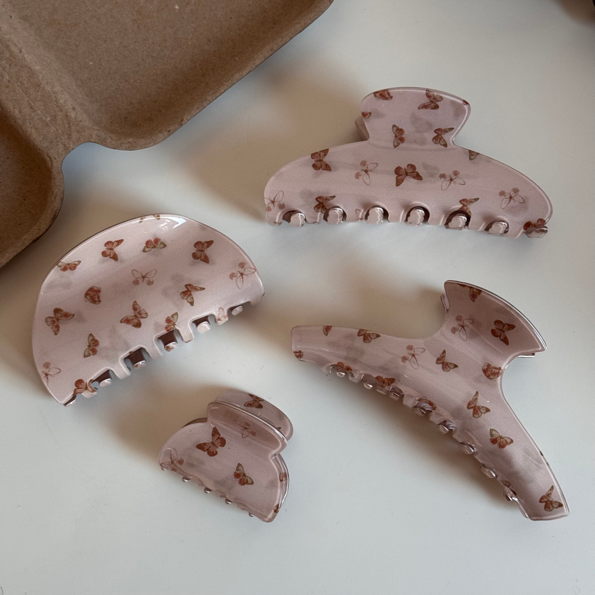 pink butterfly print catch-large fan shape