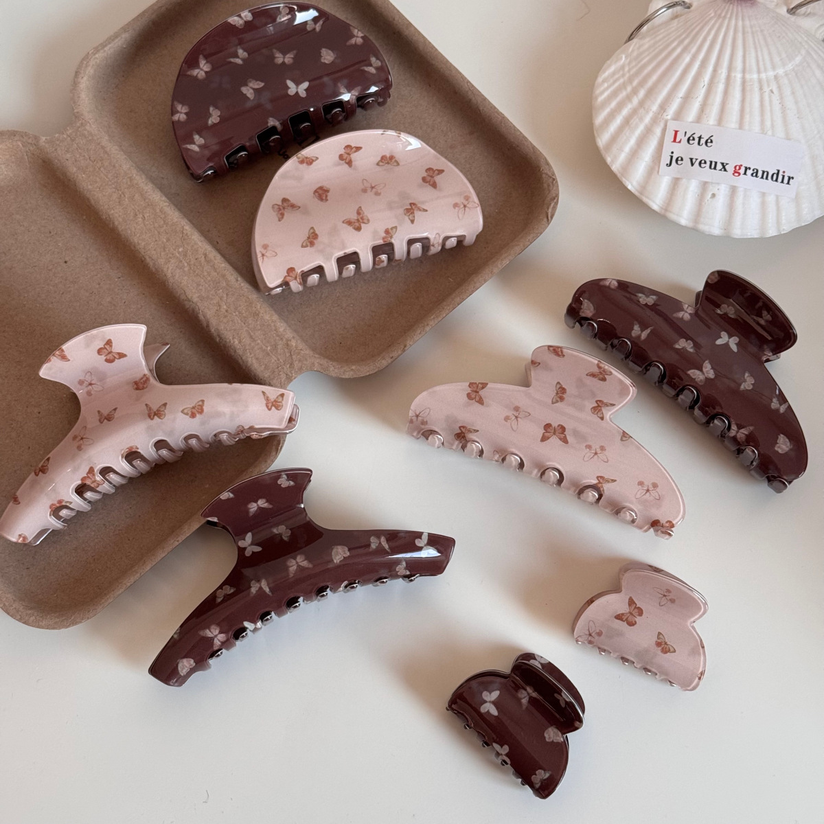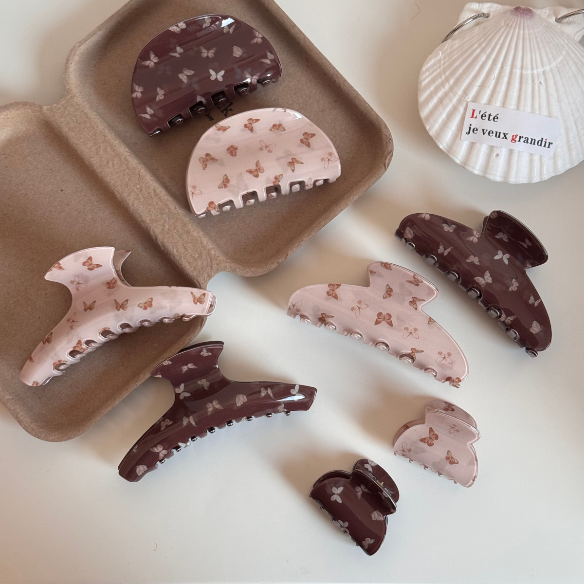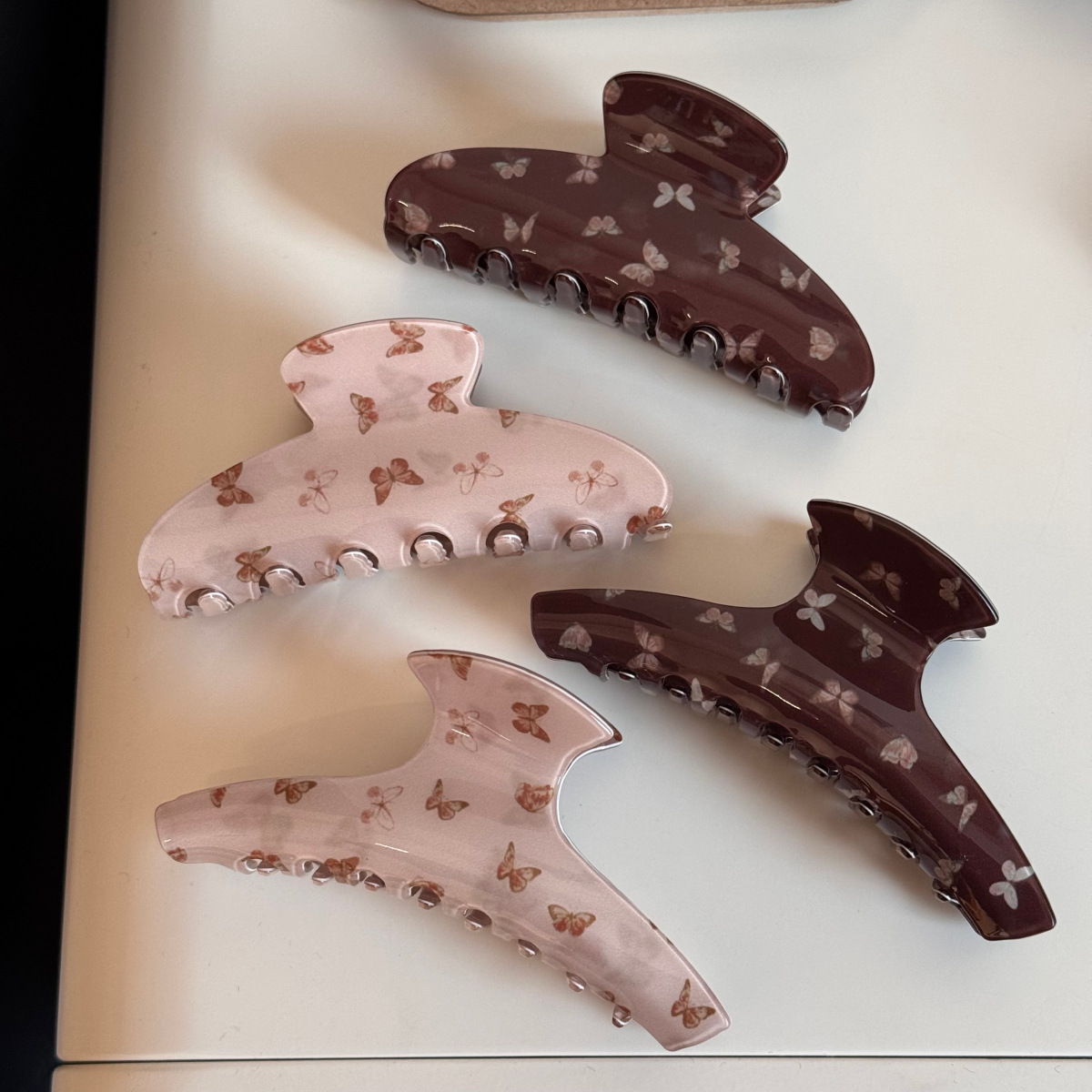 pink butterfly print catch-large fan shape