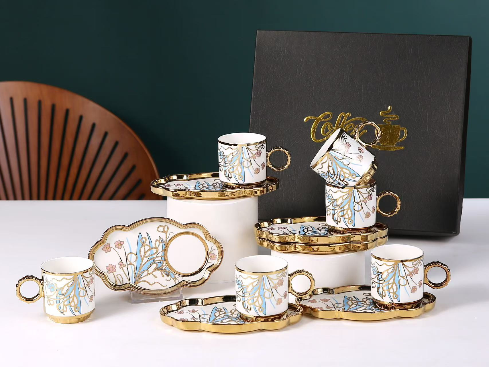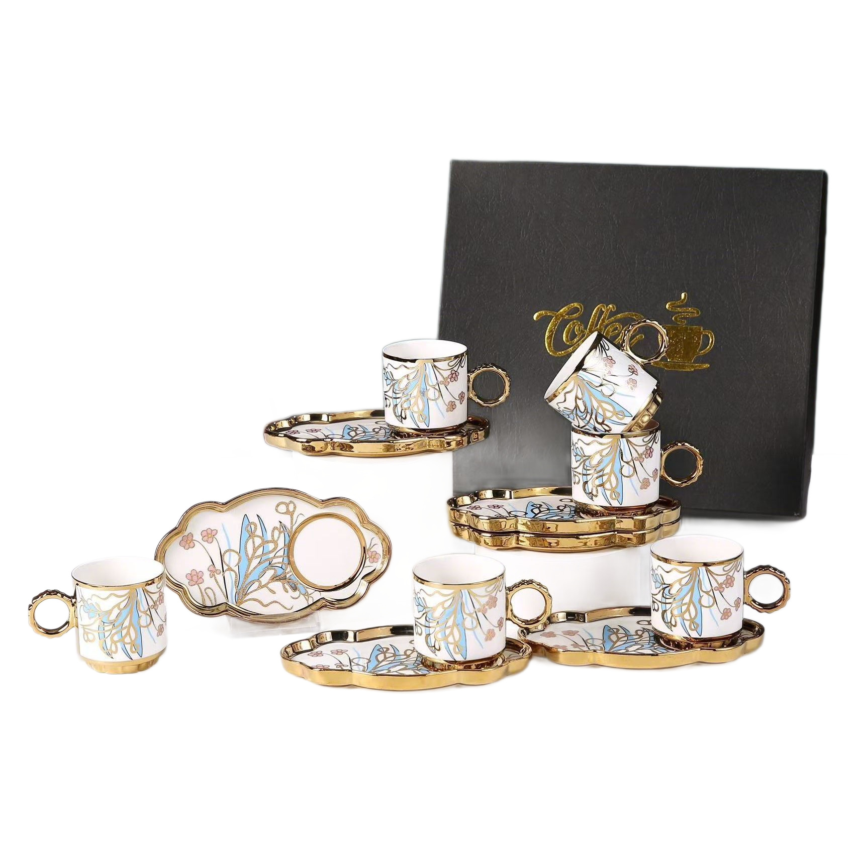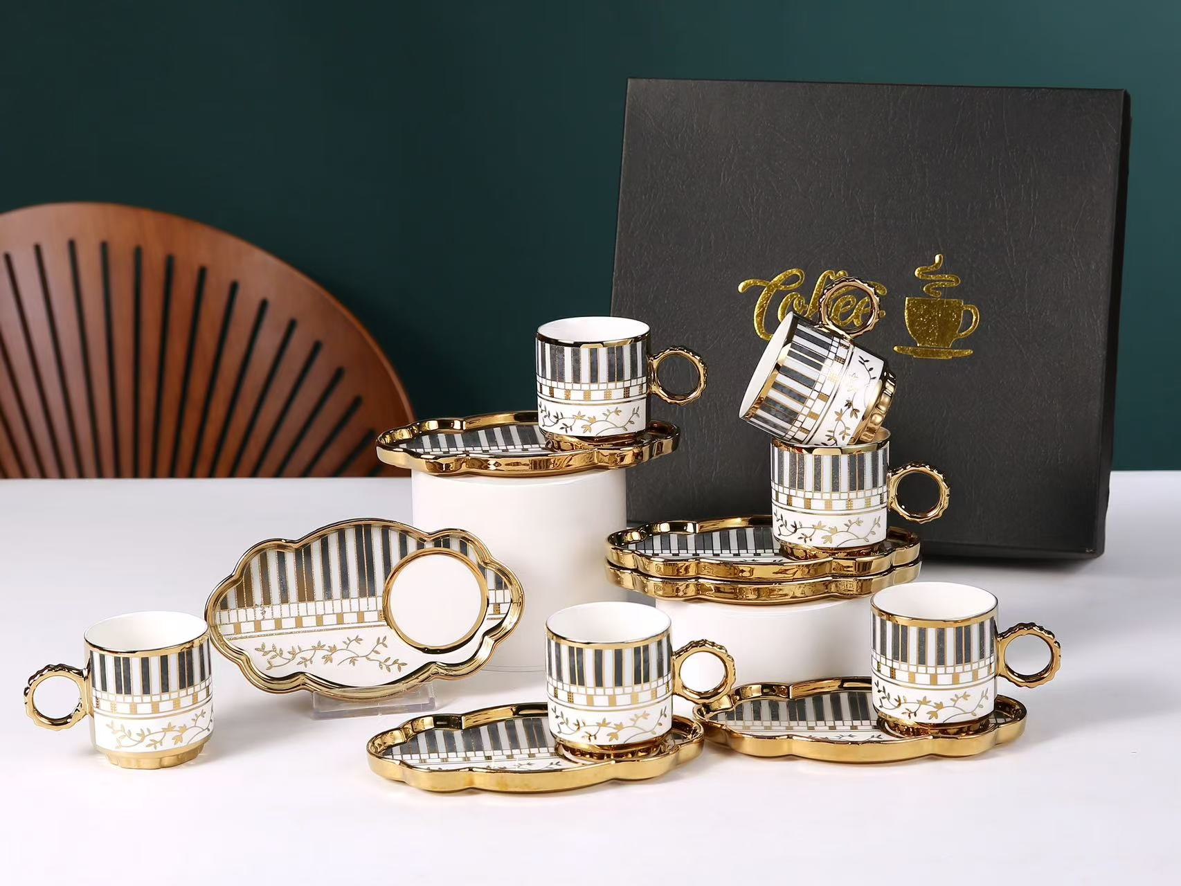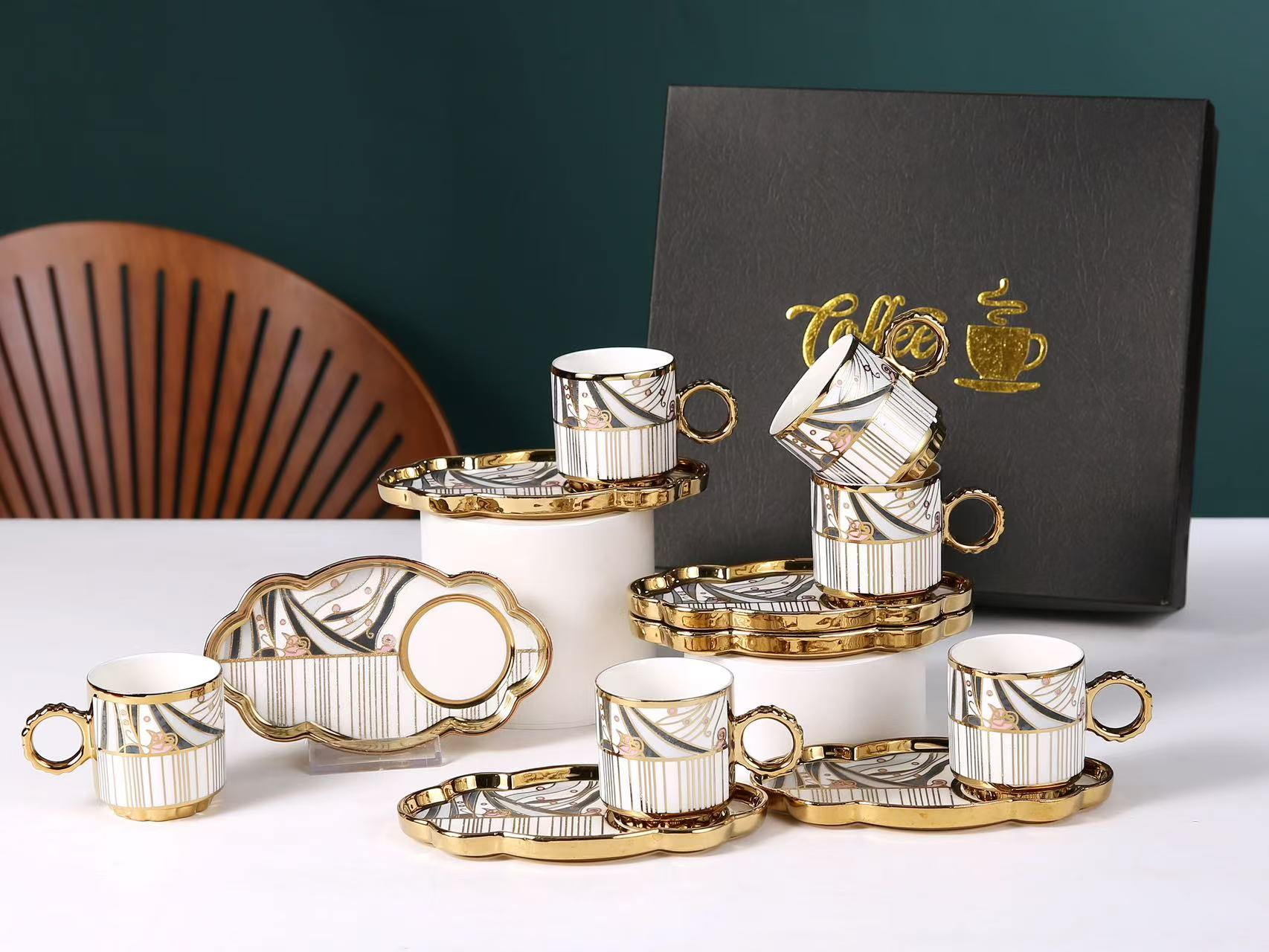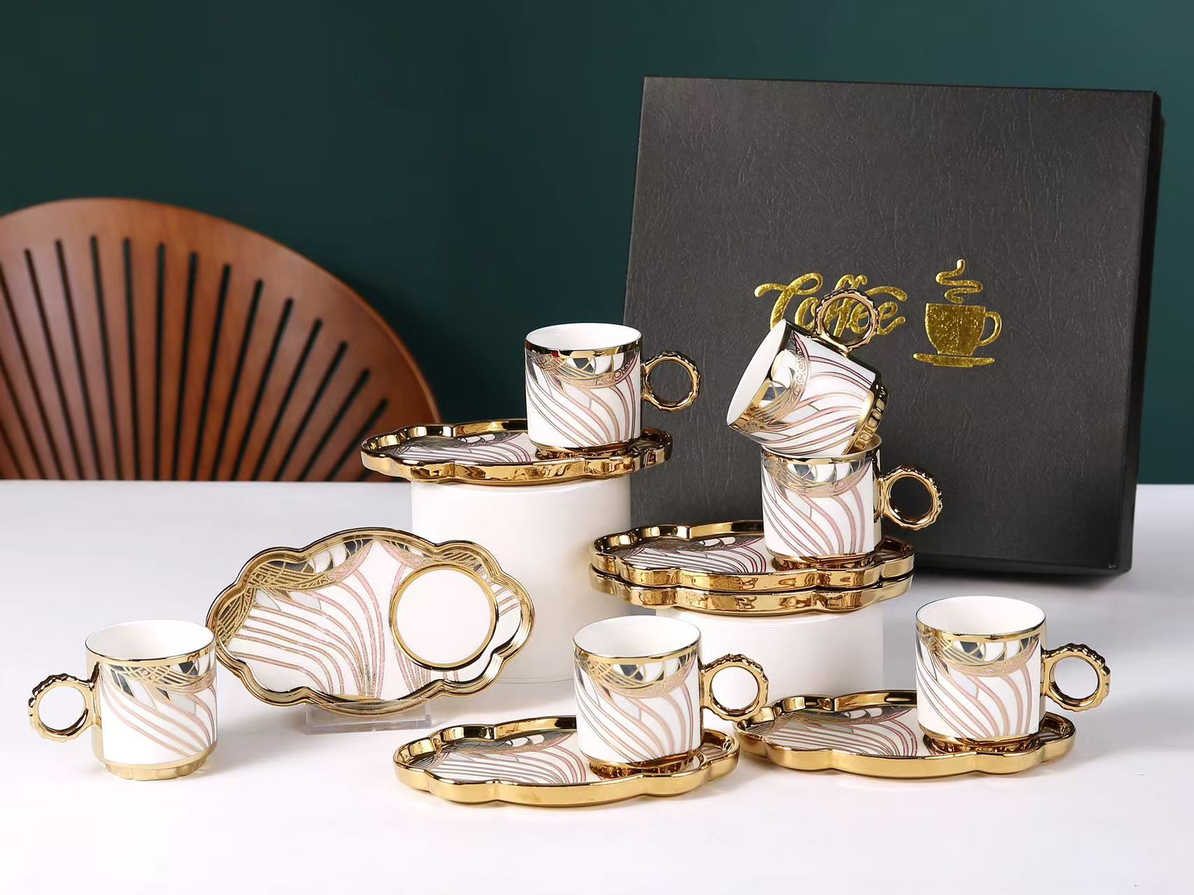 6038 european golden rim coffee cup 6 cups 6 plates