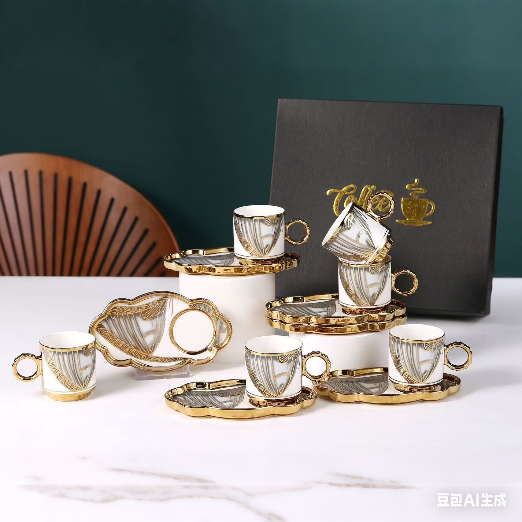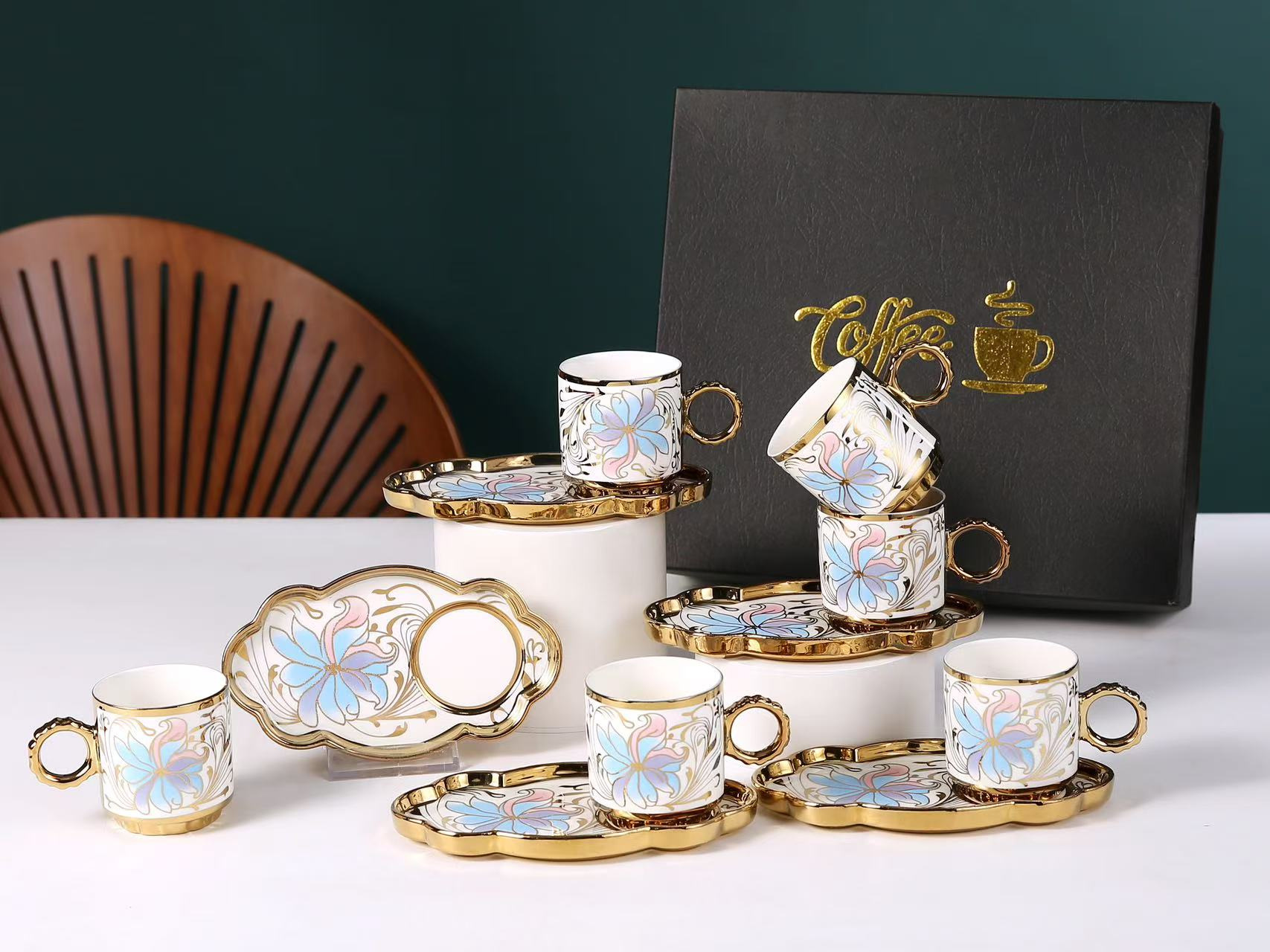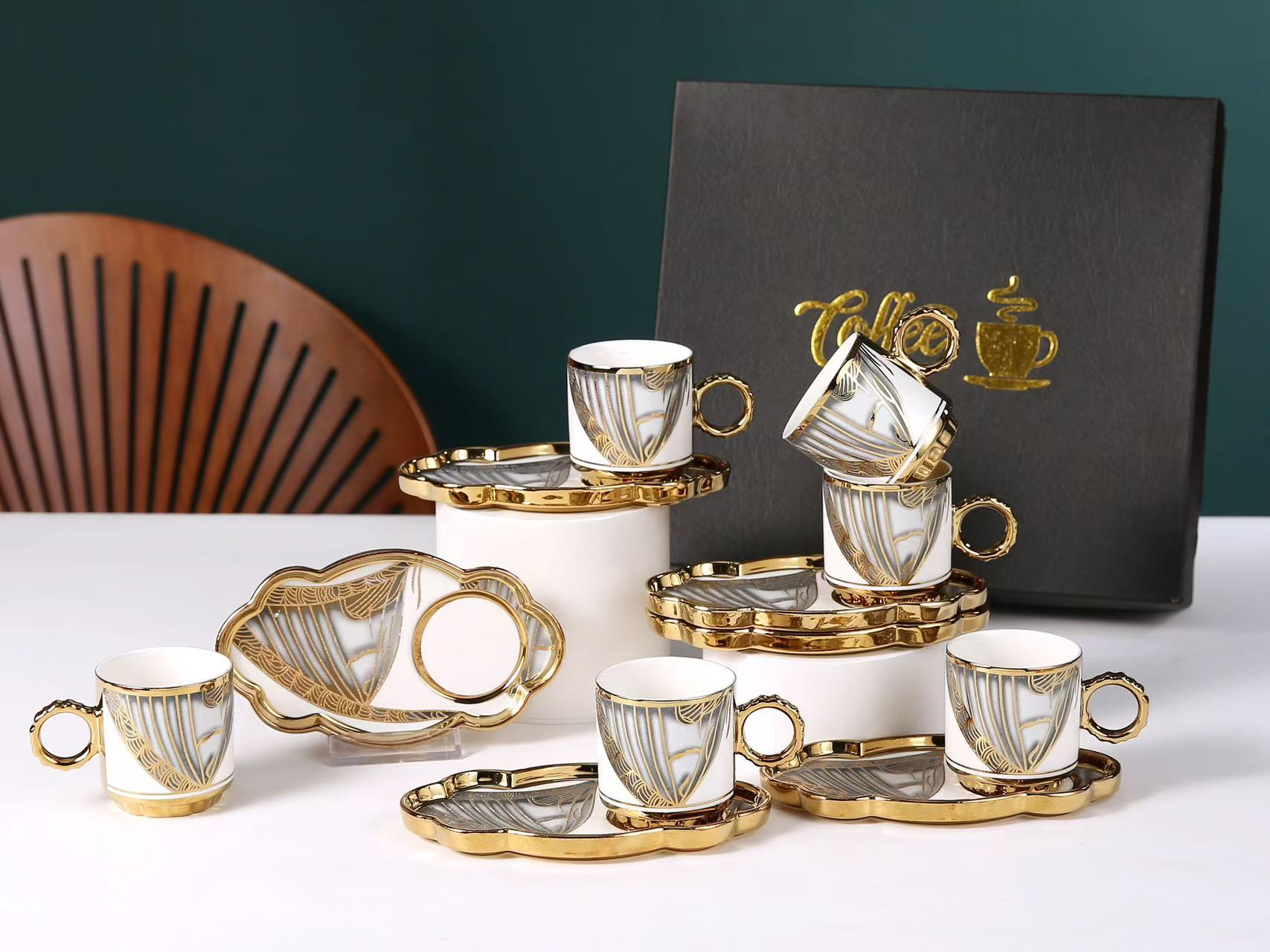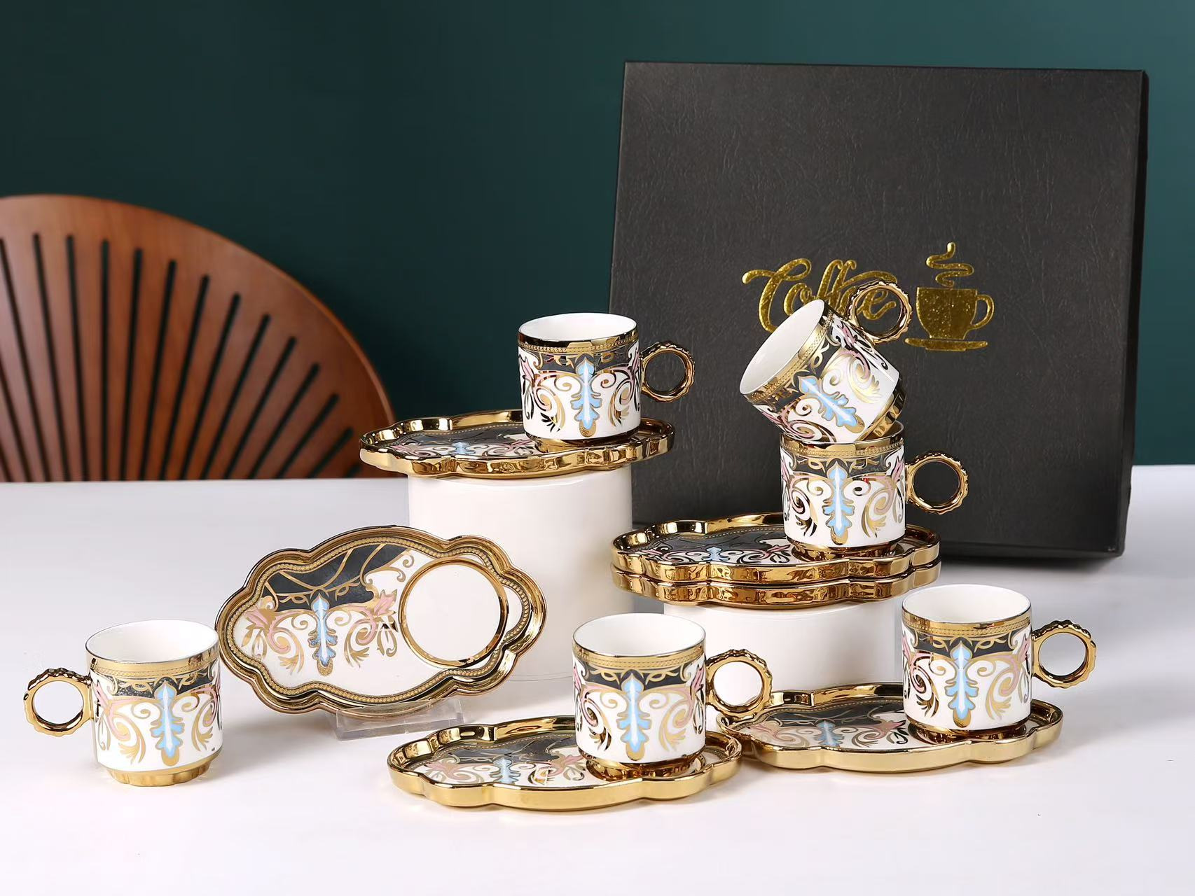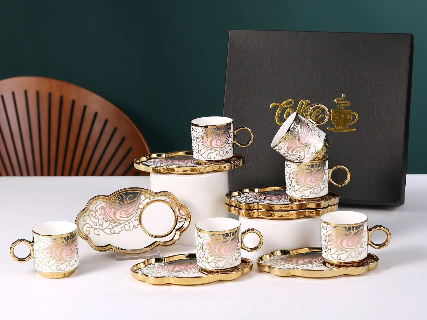 6038 european golden rim coffee cup 6 cups 6 plates