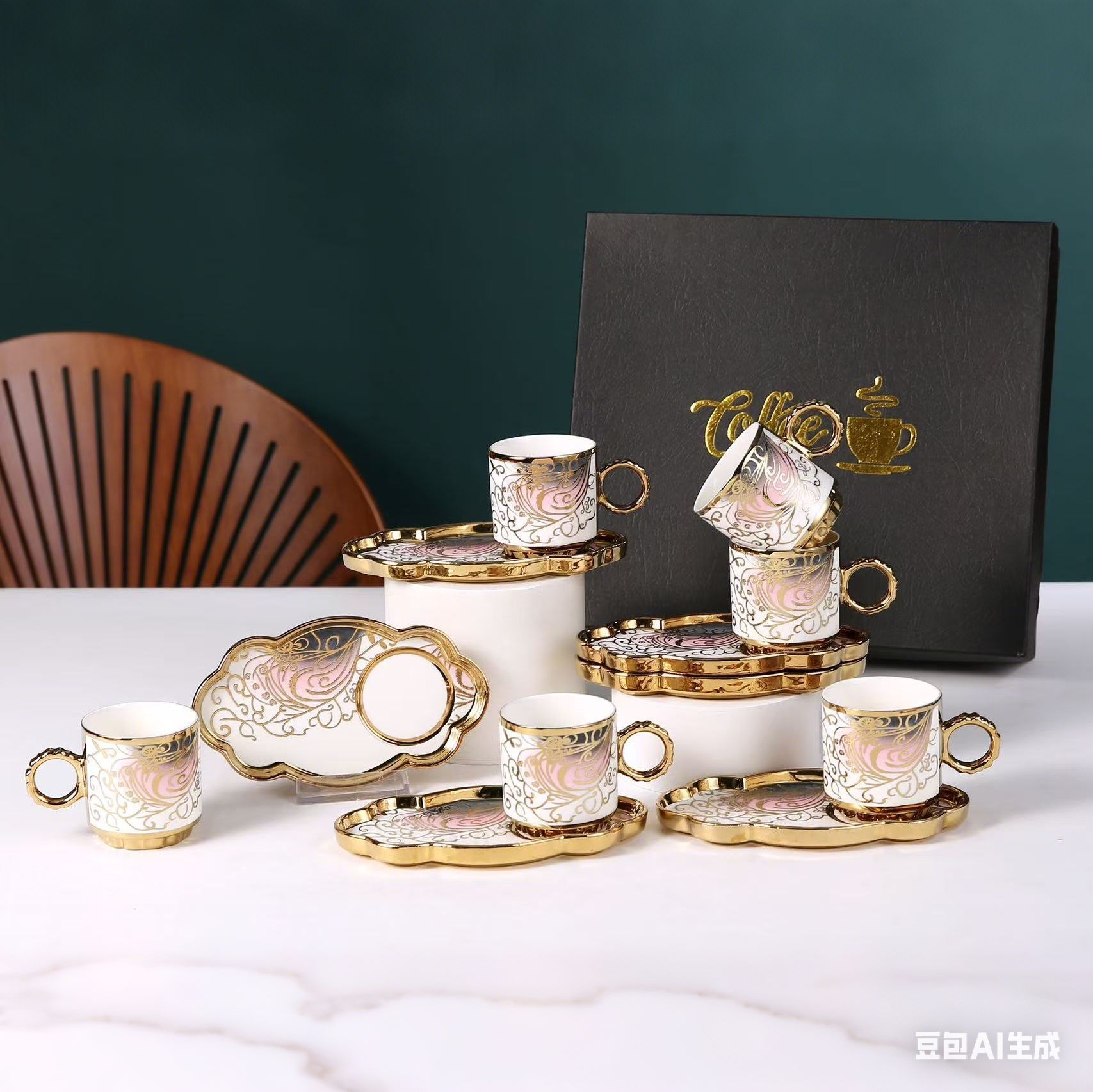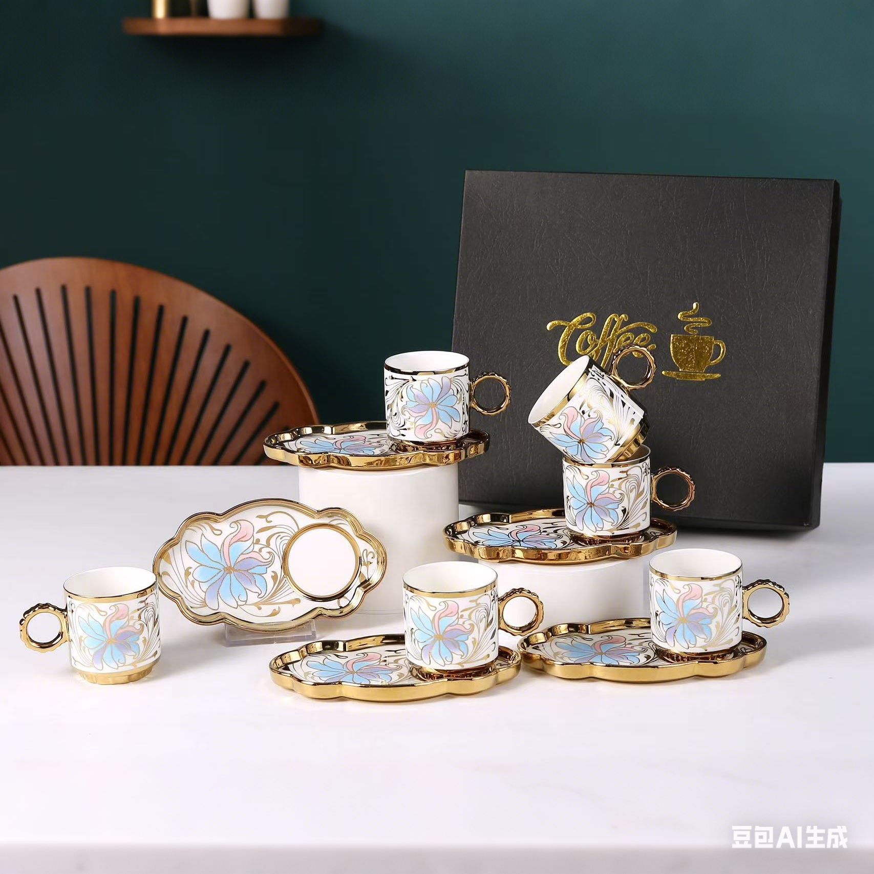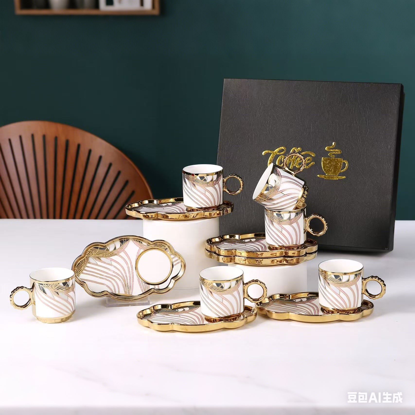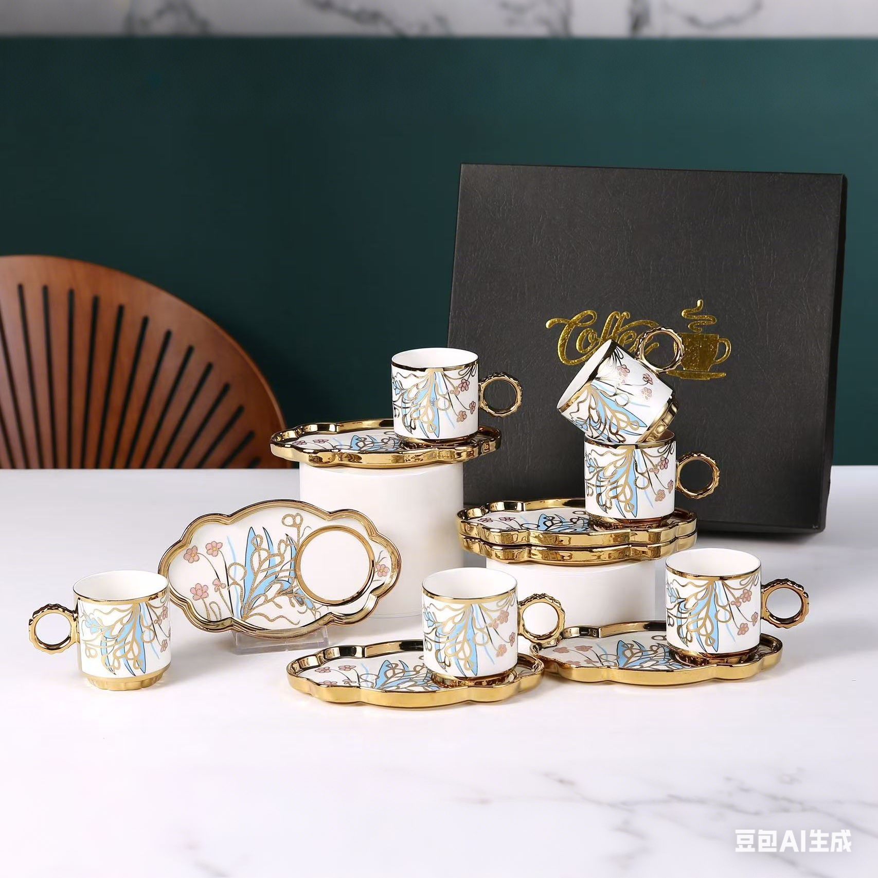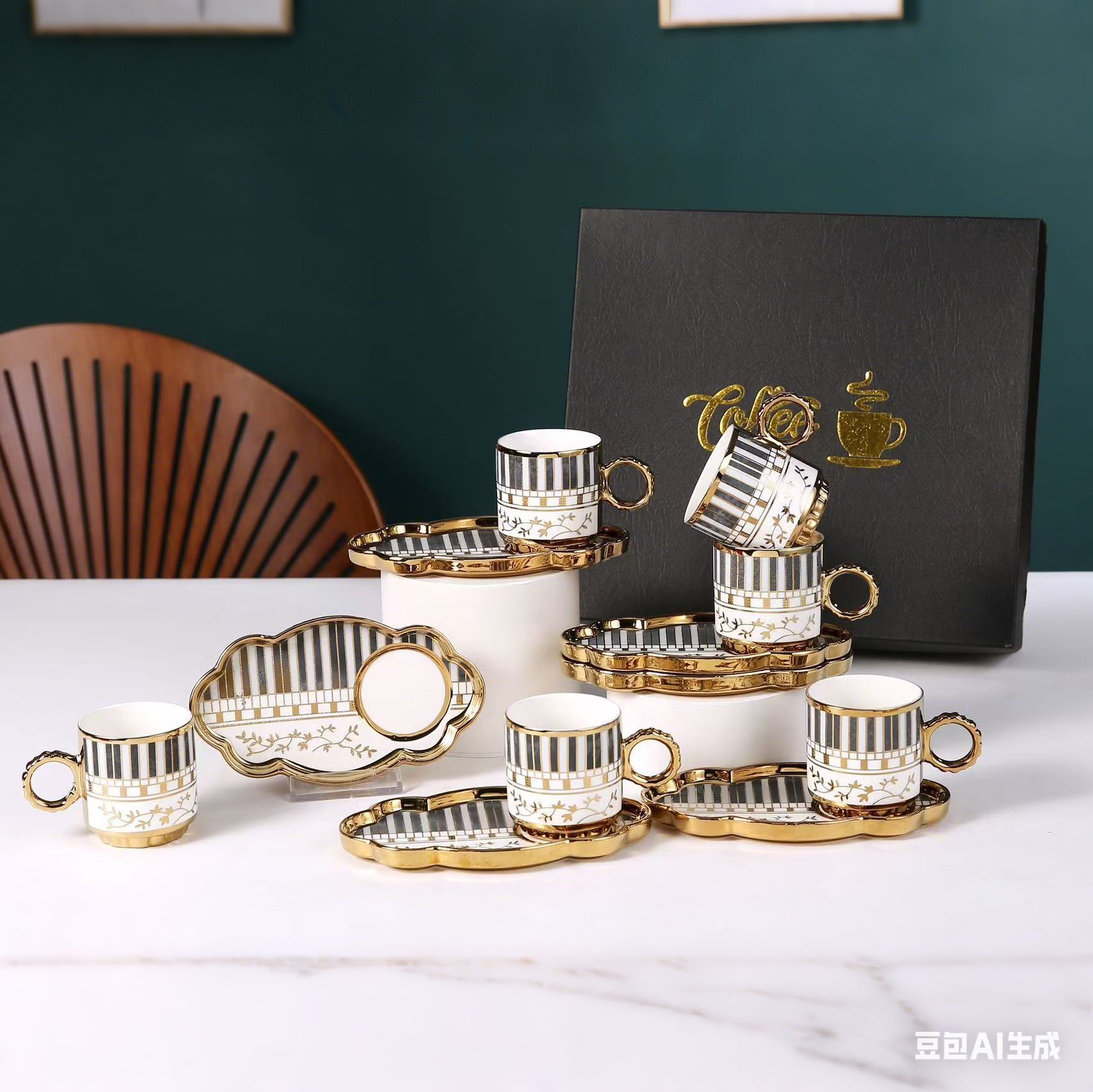 6038 european golden rim coffee cup 6 cups 6 plates