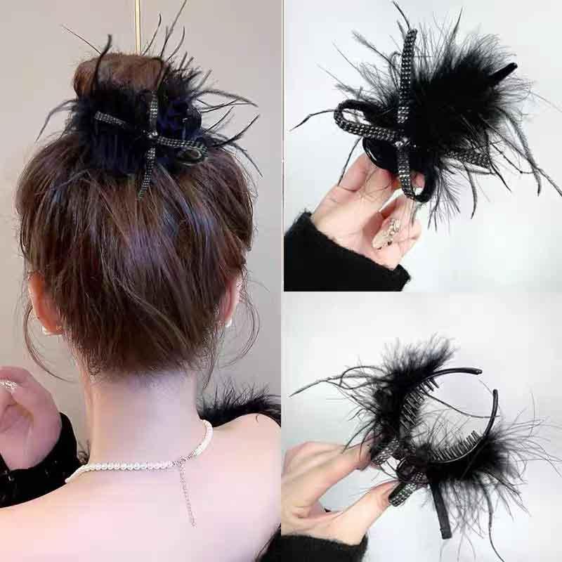 black ostrich feather rhinestone pearl clip about 11cm (pc clamp is drop-resistant and scratch-resistant)