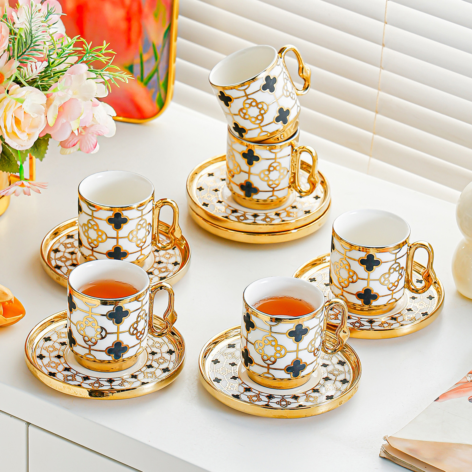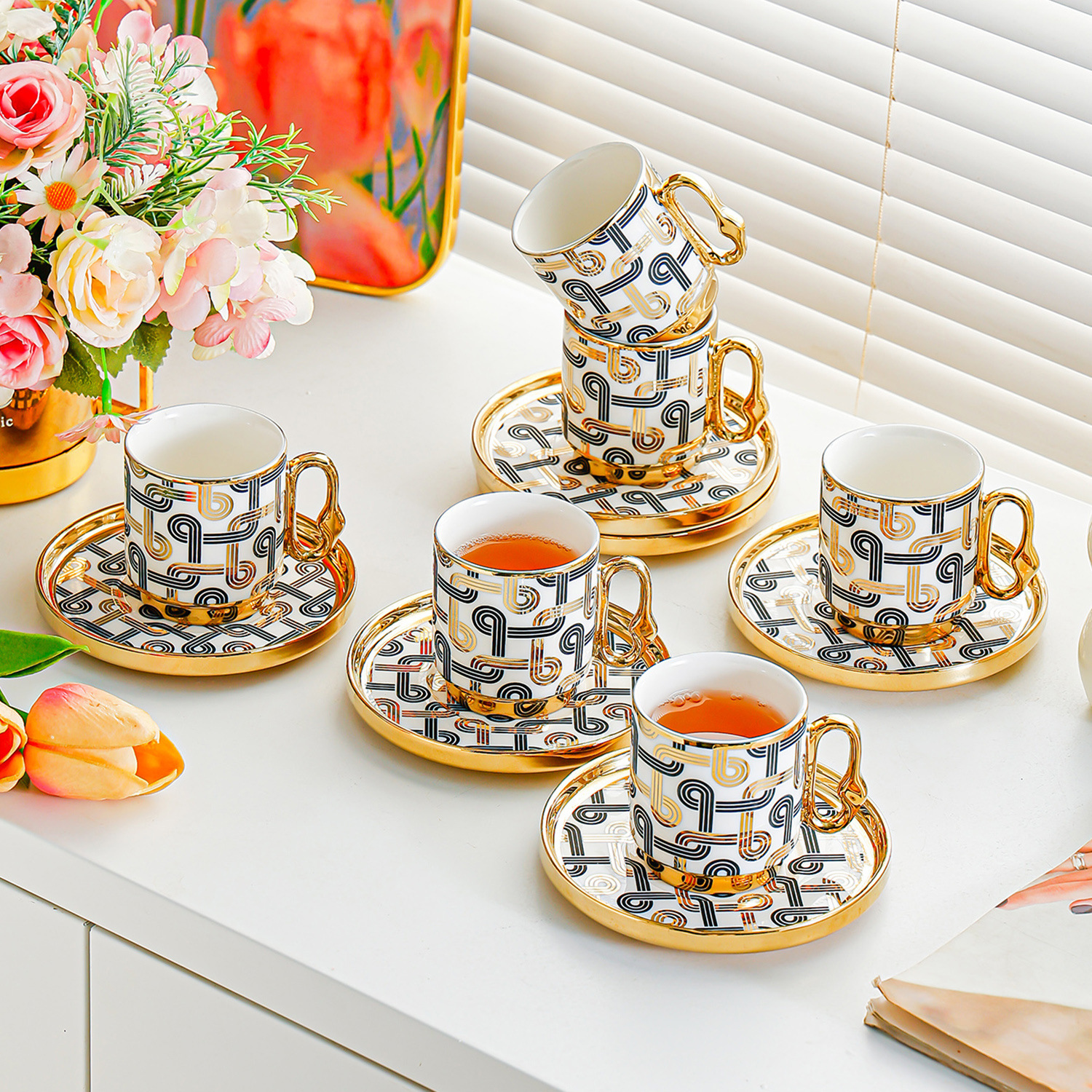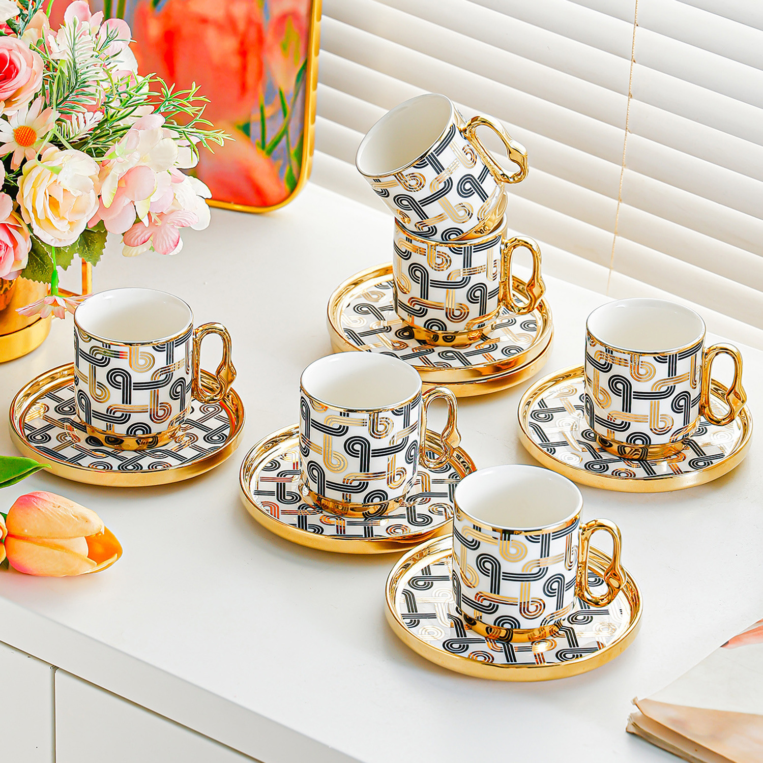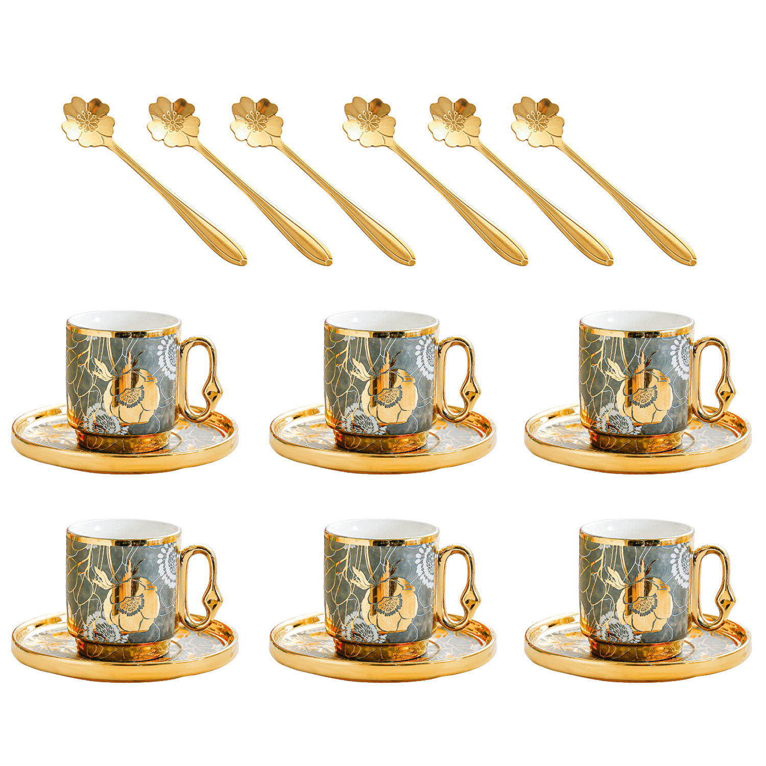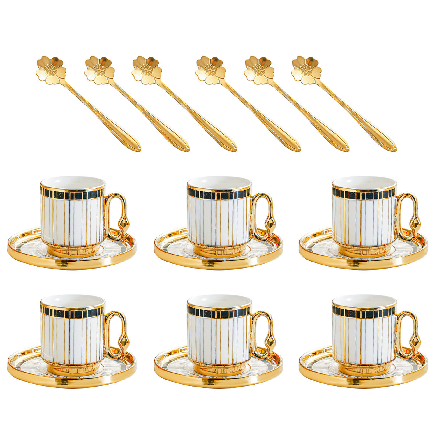 6038 european golden rim coffee cup 6 cups 6 saucers 6 spoons