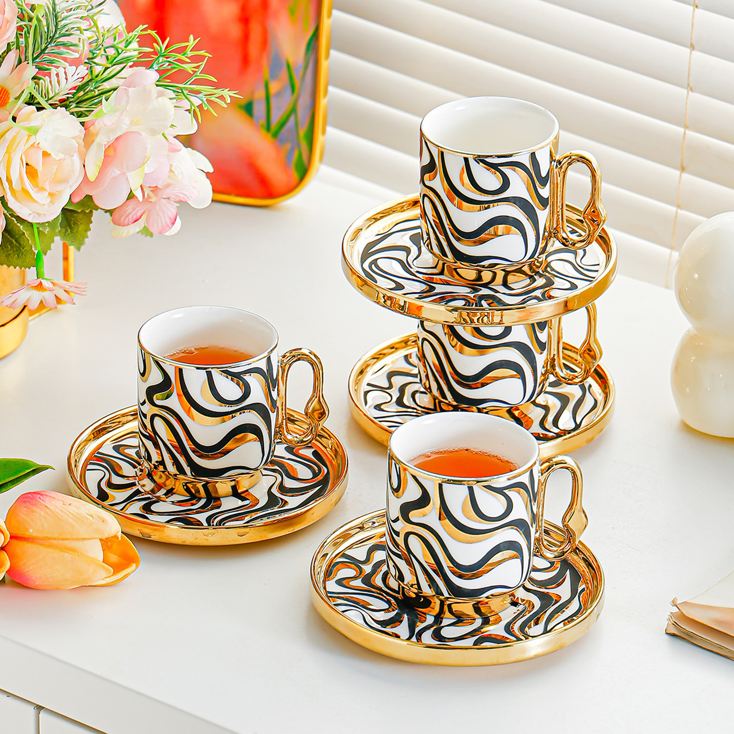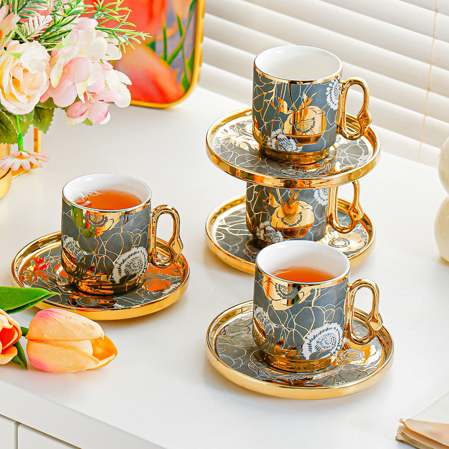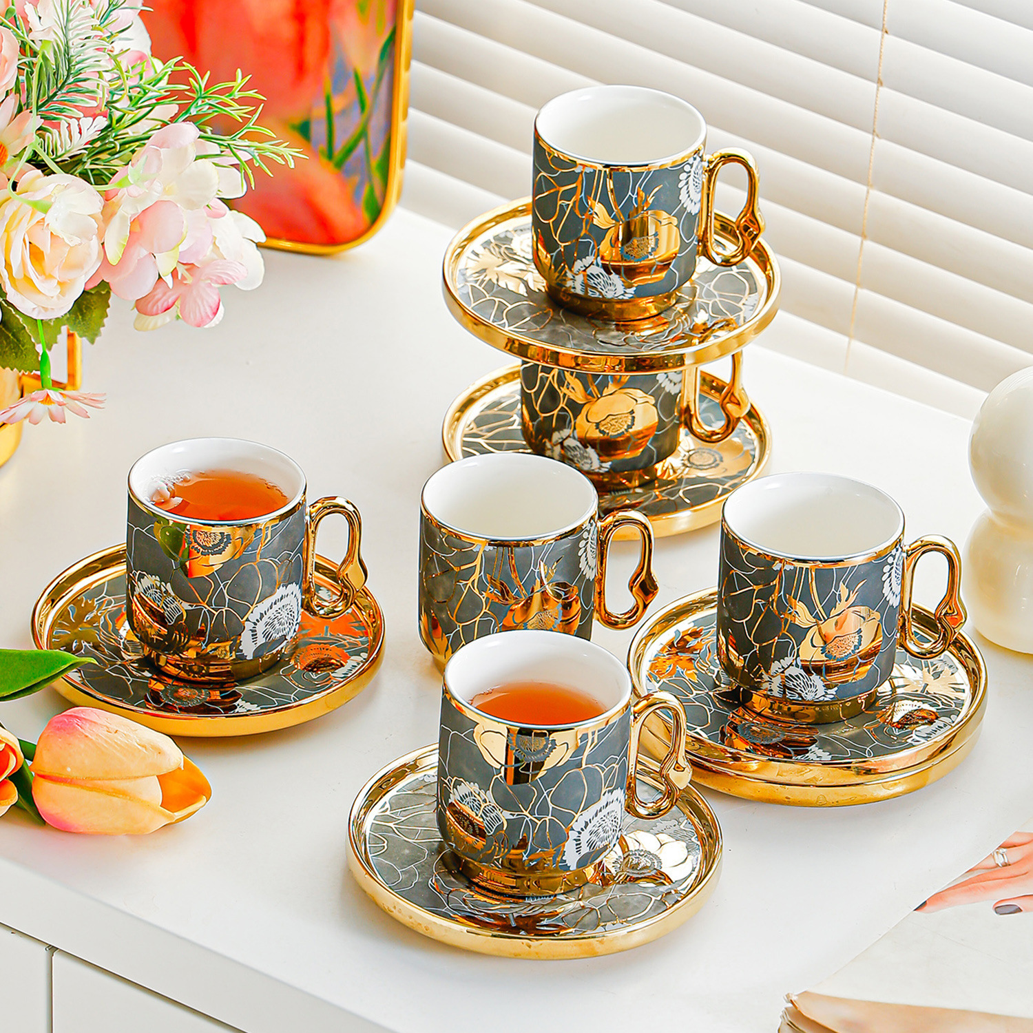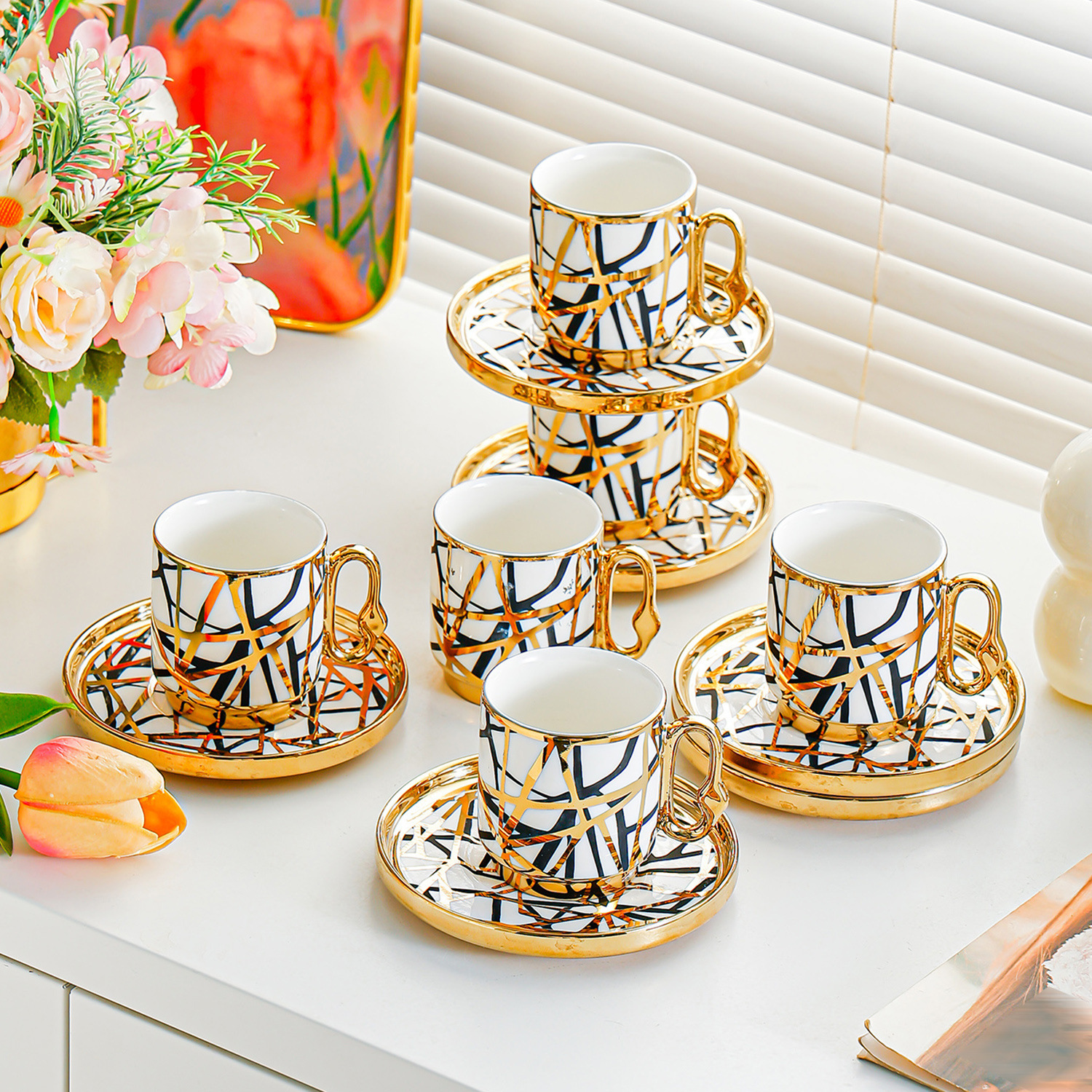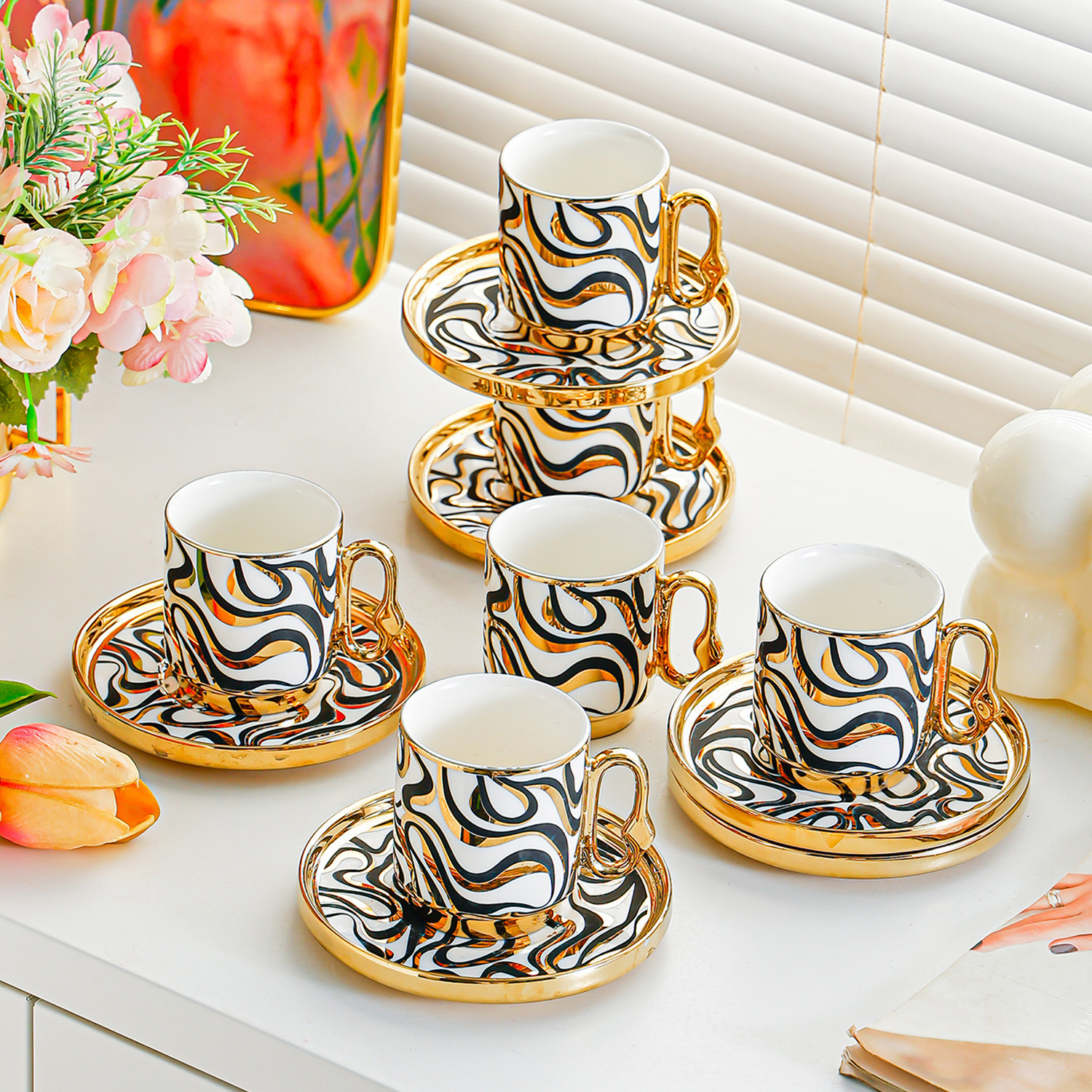 6038 european golden rim coffee cup 6 cups 6 saucers 6 spoons