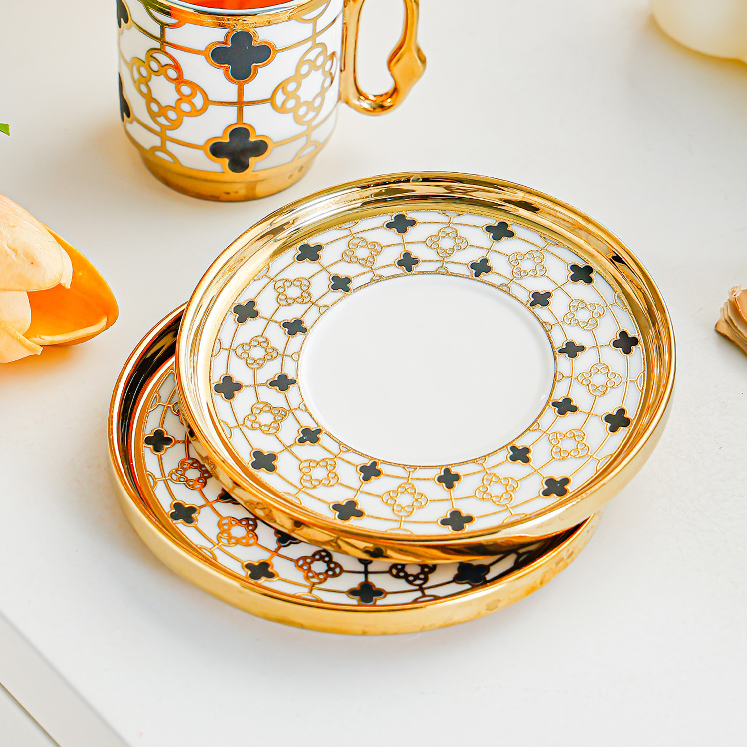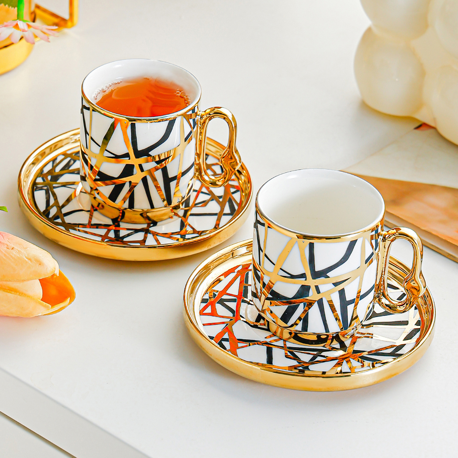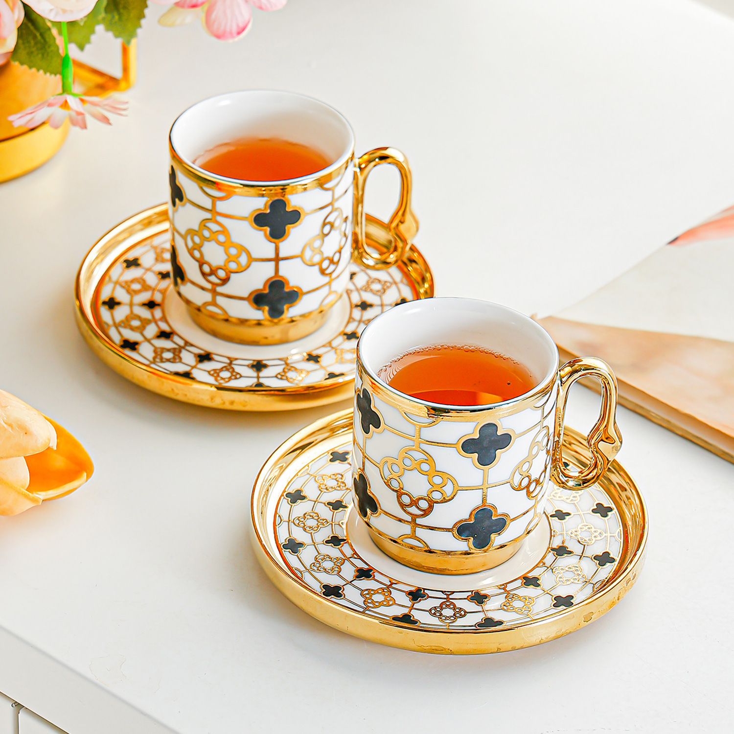 6034 european golden rim coffee cups 6 cups 6 saucers