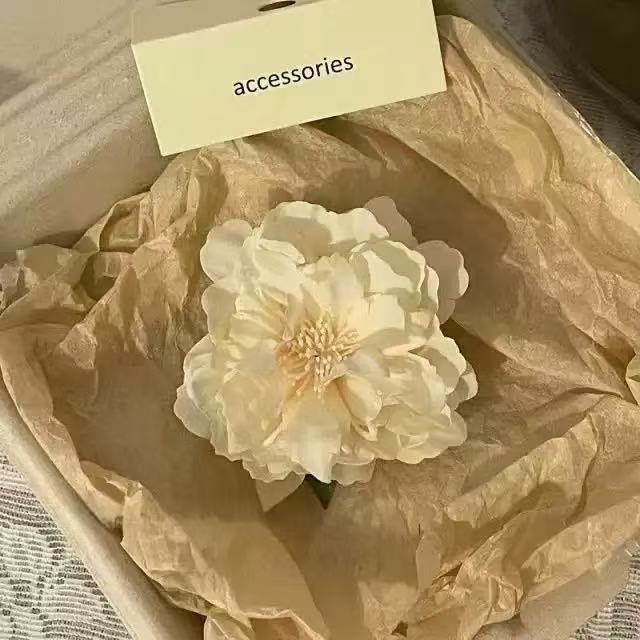 beige flower barrettes