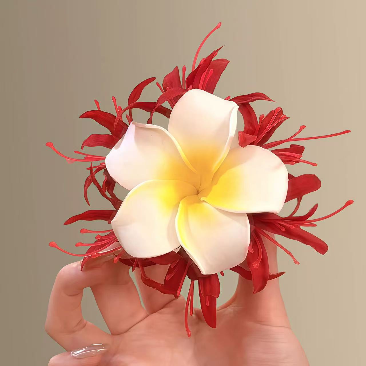 red plumeria rubra barrettes
