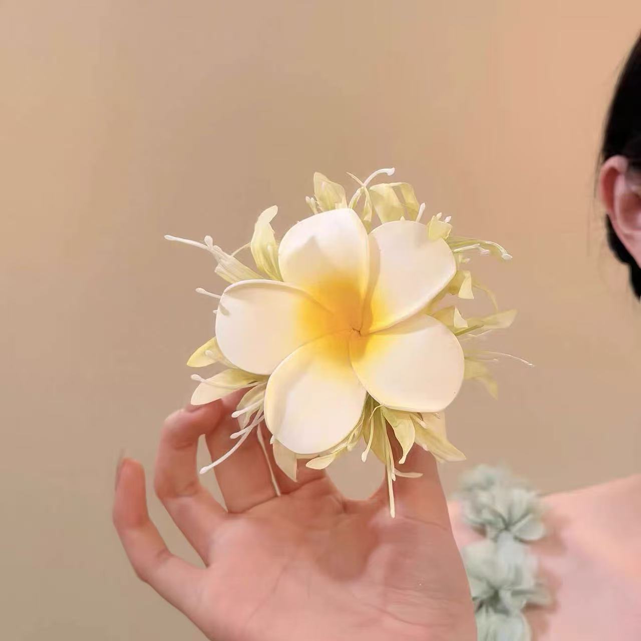 beige plumeria rubra barrettes