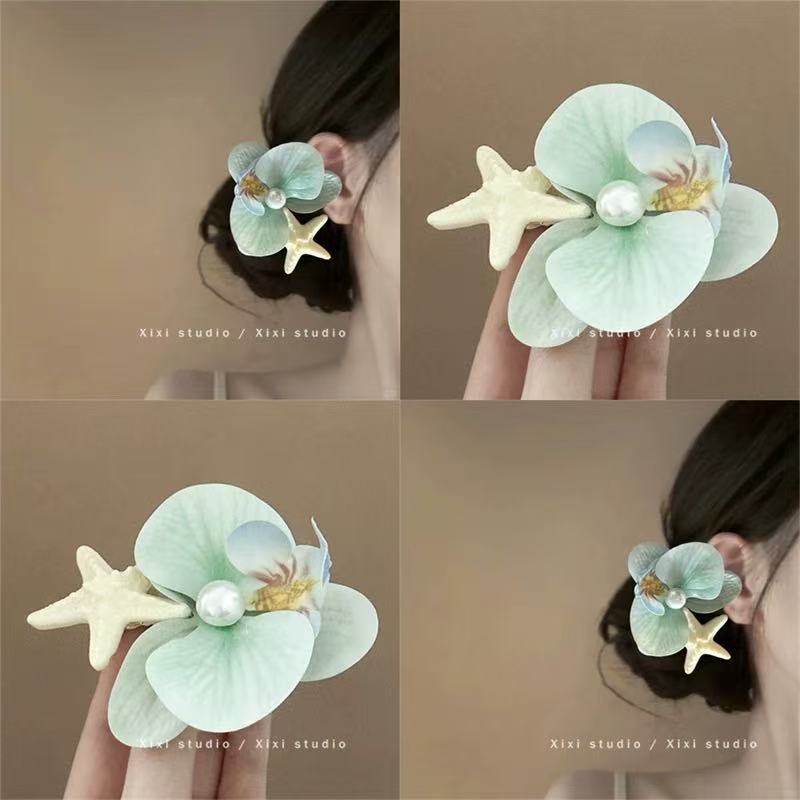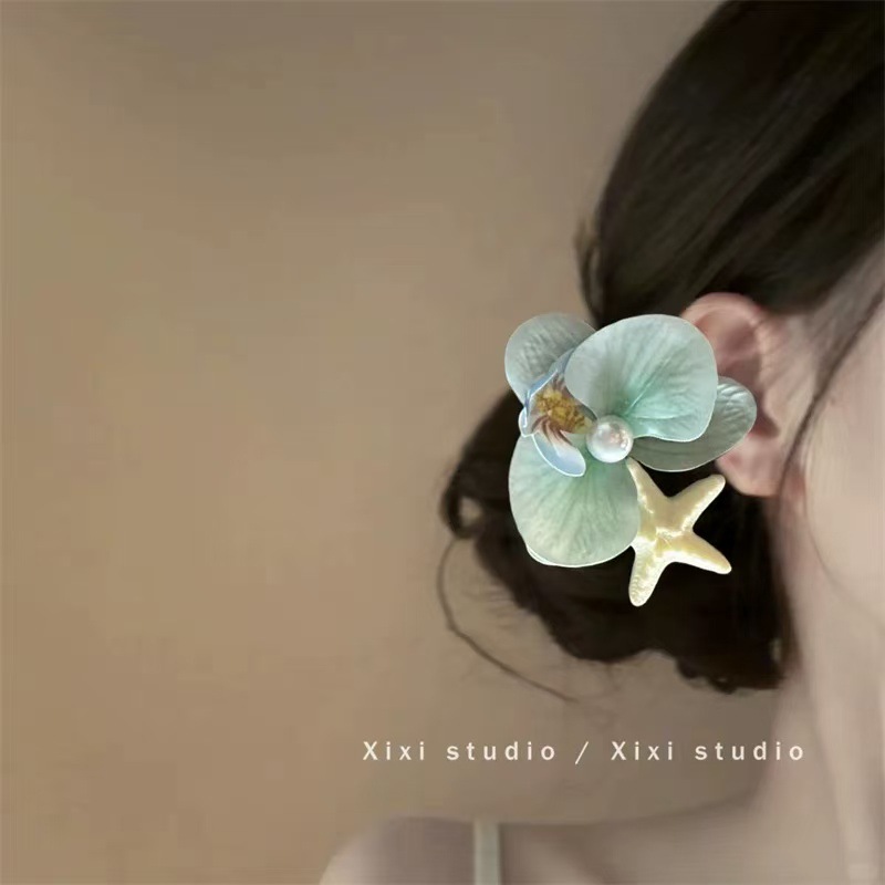 blue starfish flower barrettes