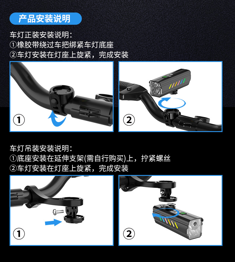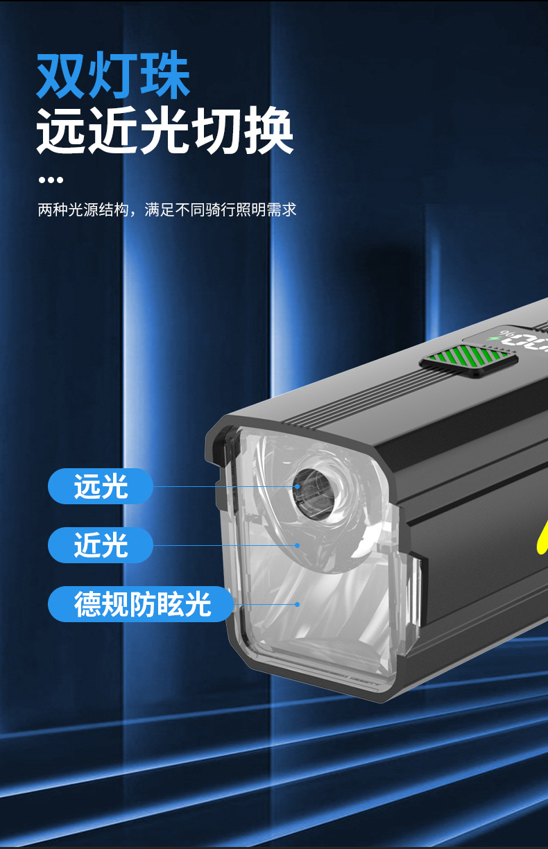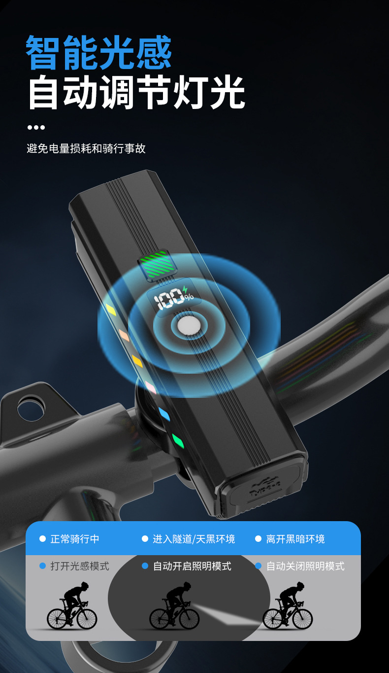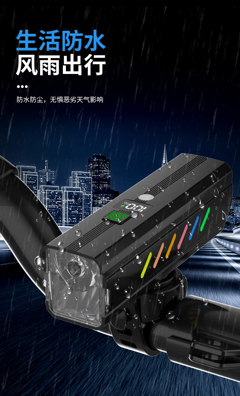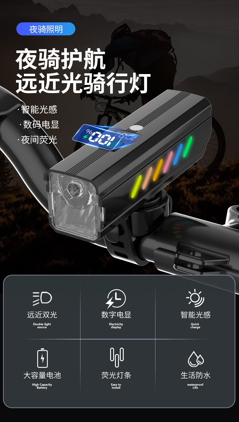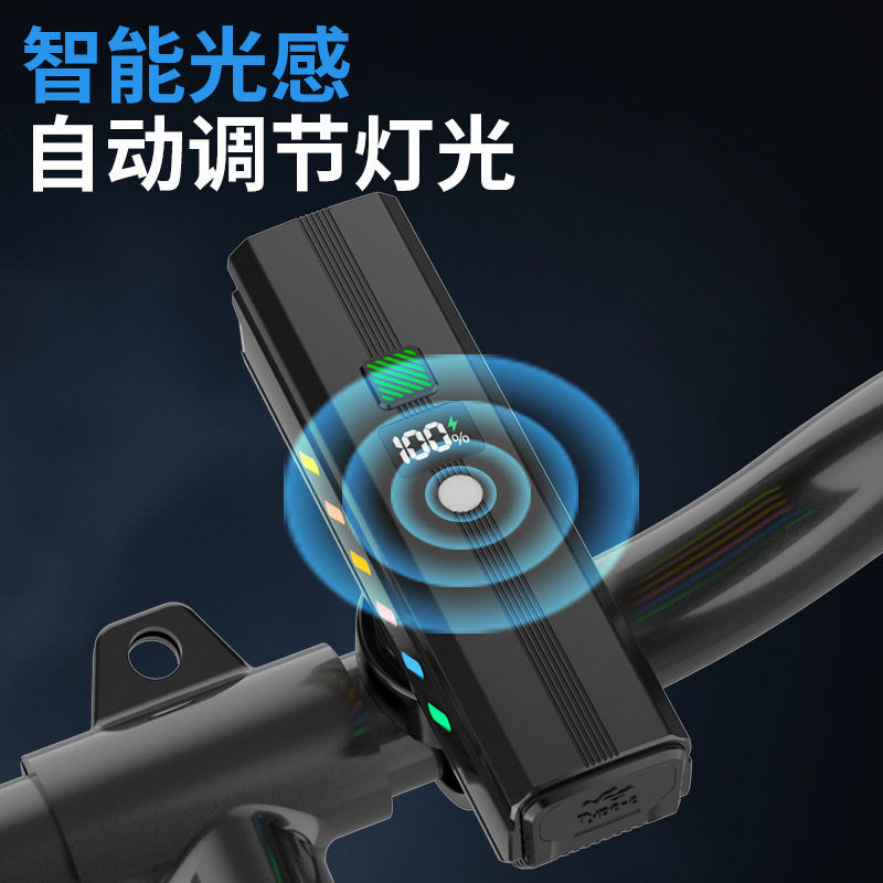 foreign trade exclusive digital display bicycle light far and near light integrated night riding headlight intelligent light sense mountain highway riding light