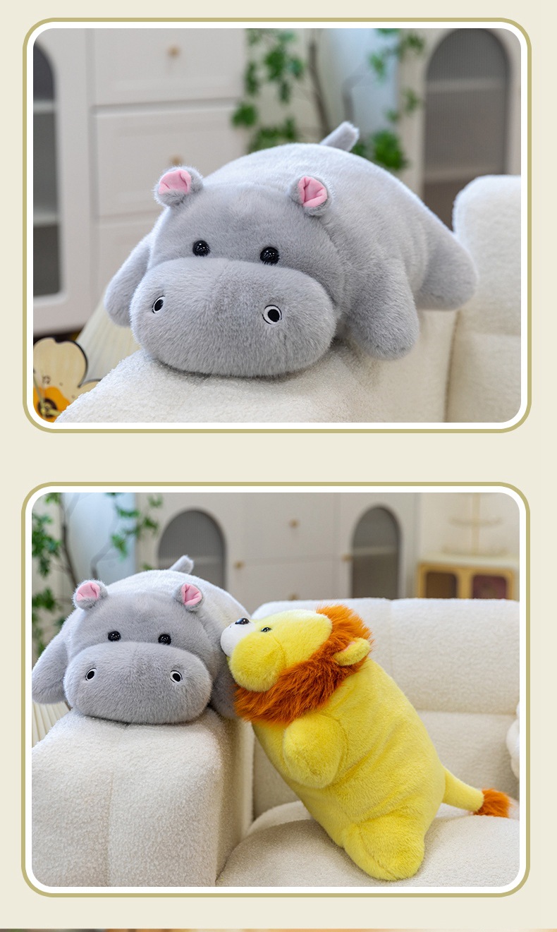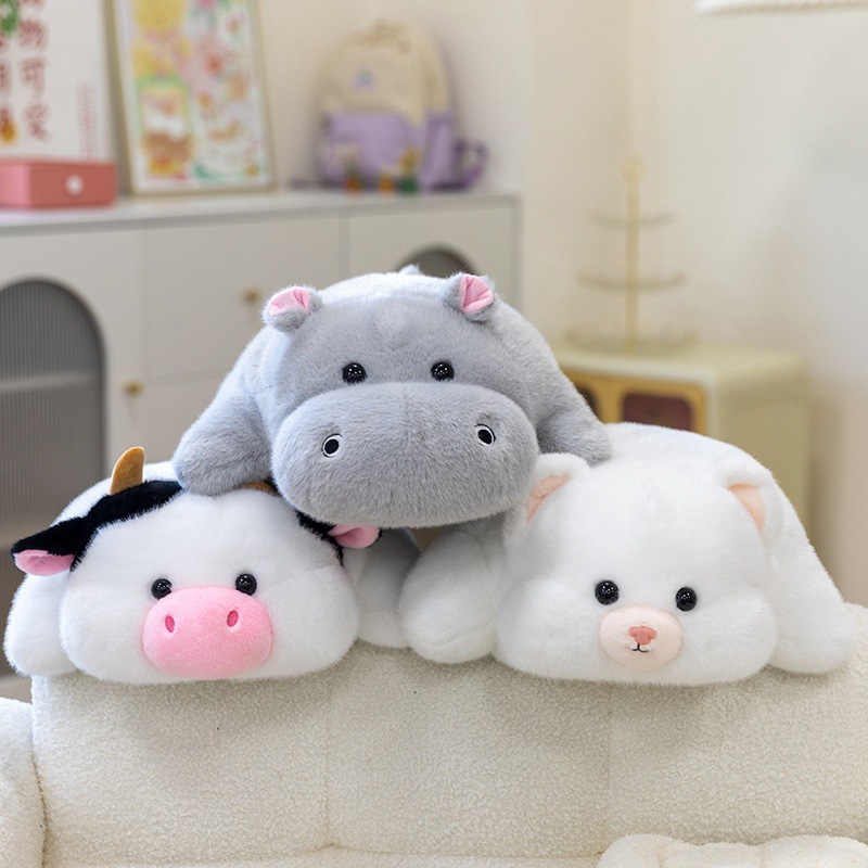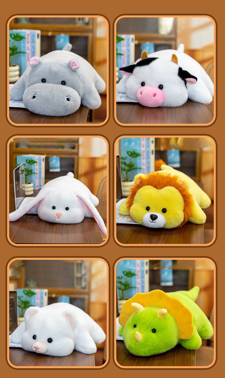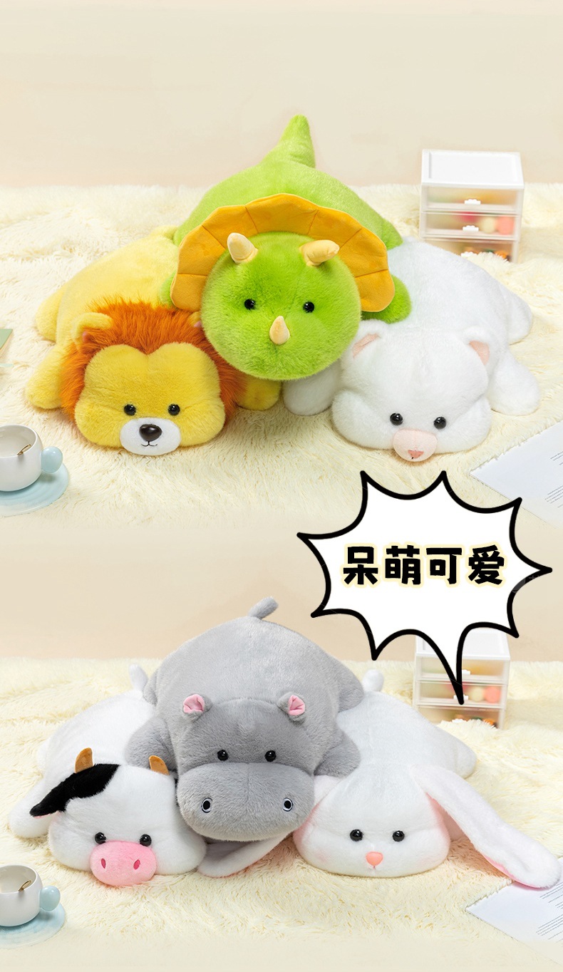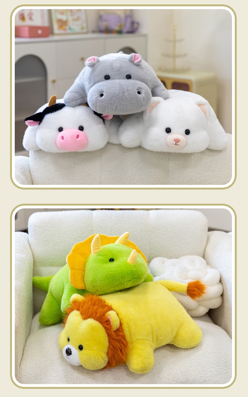 color: soft lying hippo, soft lying dinosaur, soft lying cow, soft lying