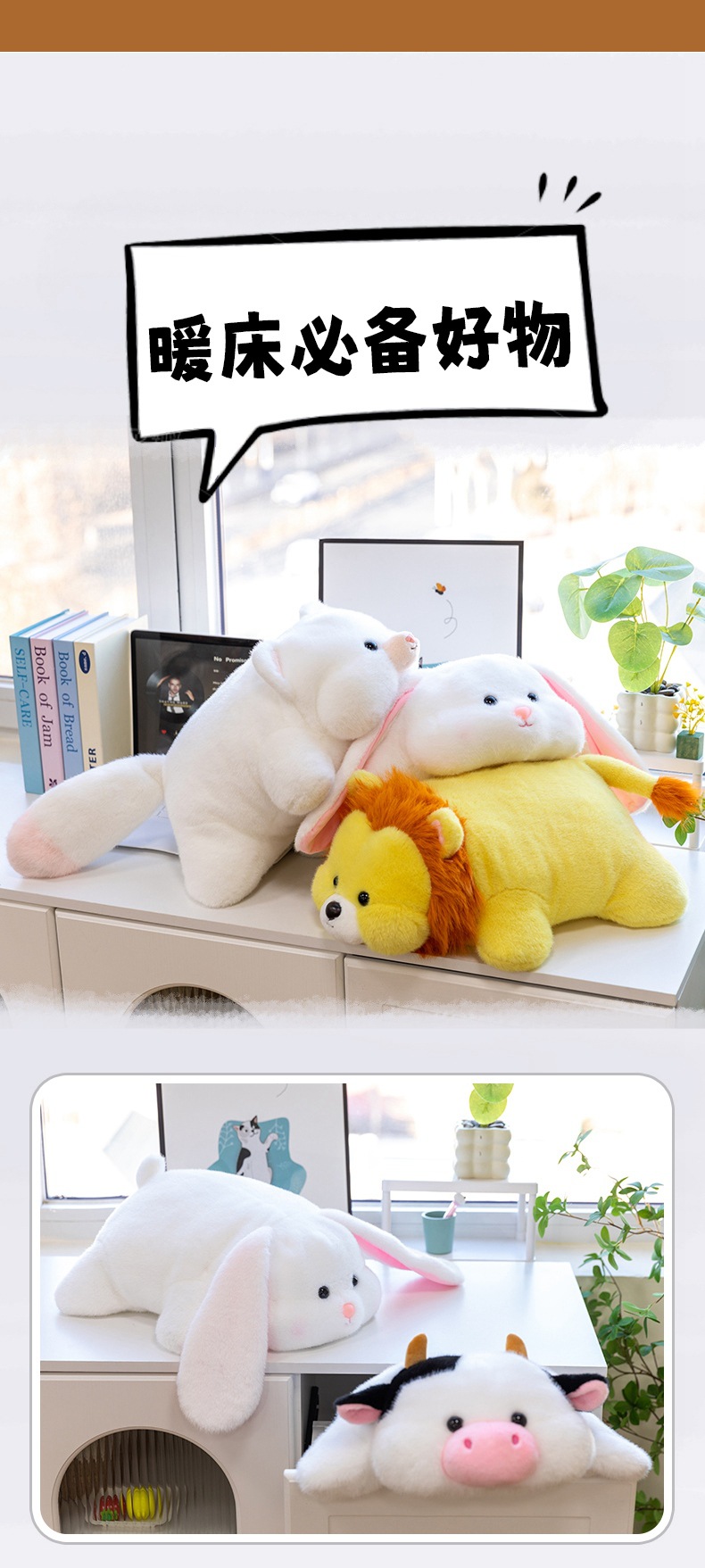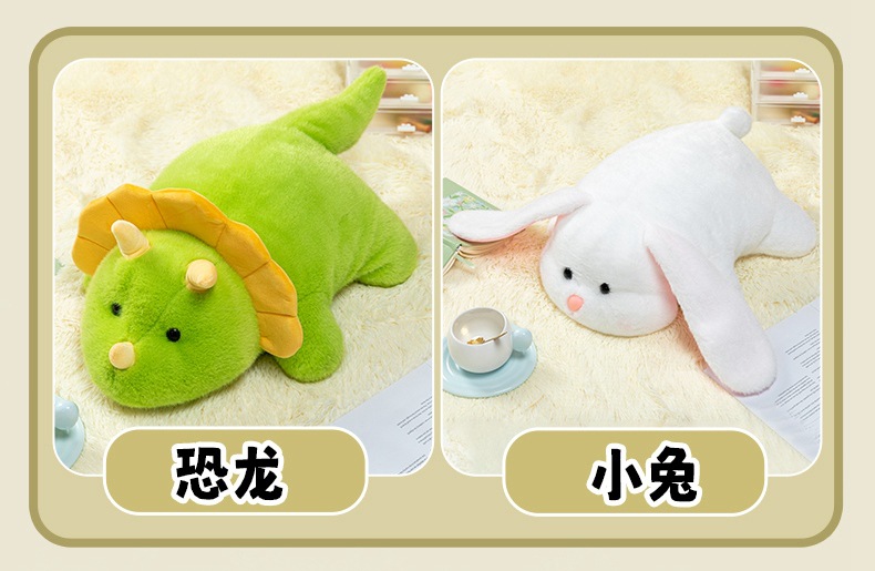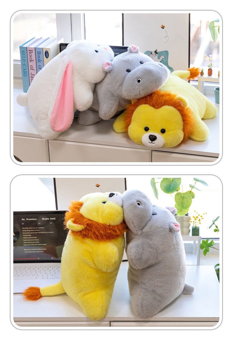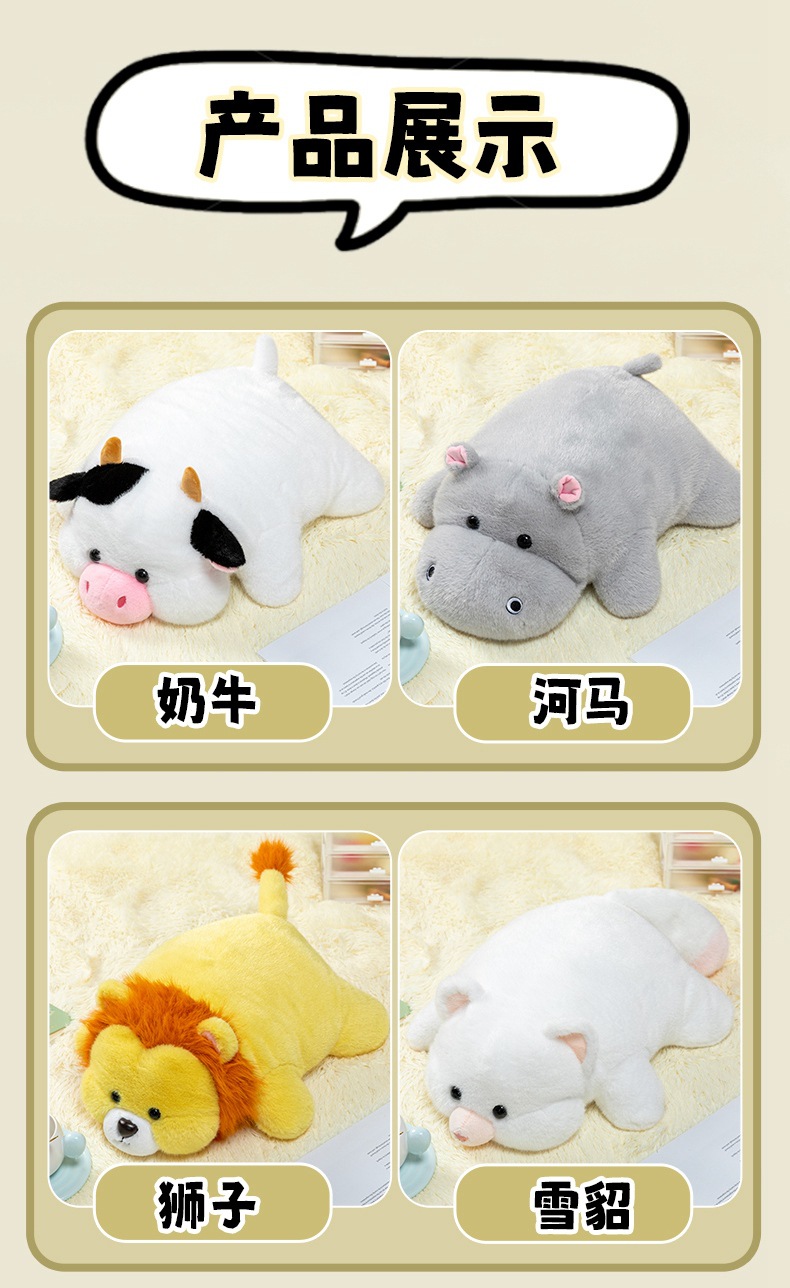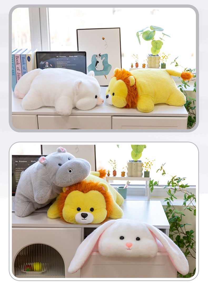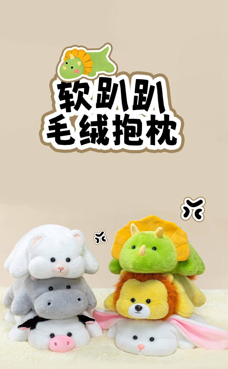 color: soft lying hippo, soft lying dinosaur, soft lying cow, soft lying