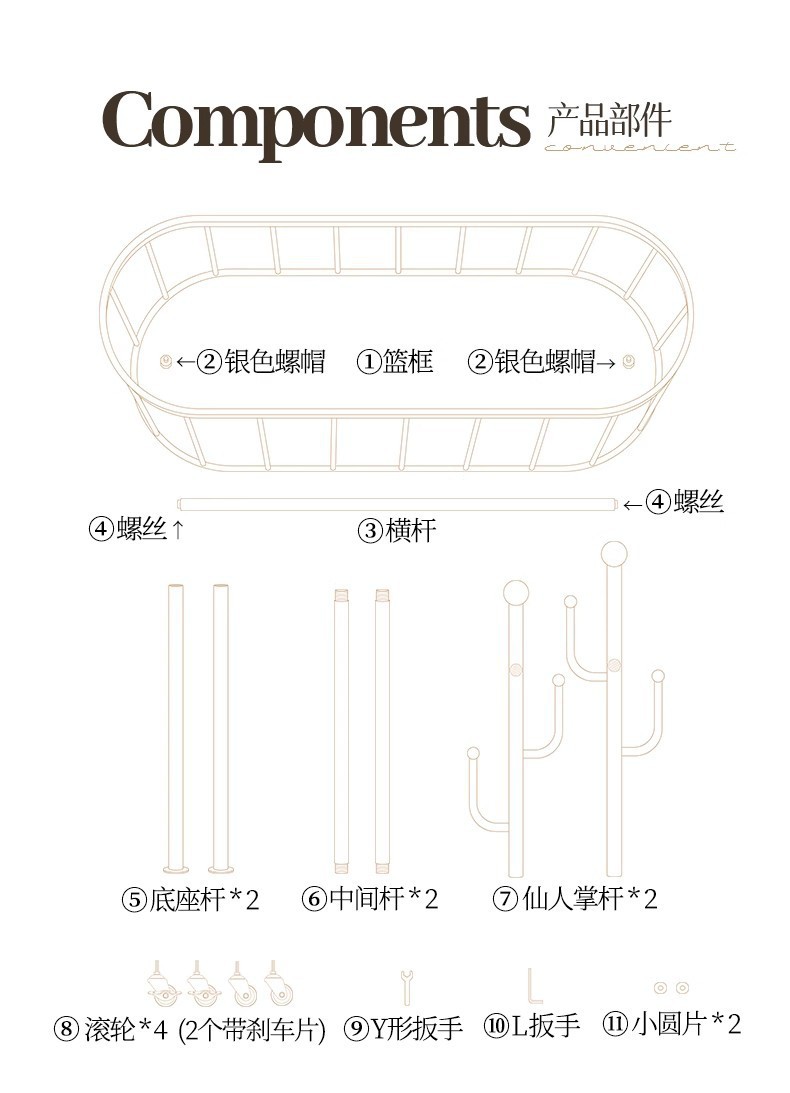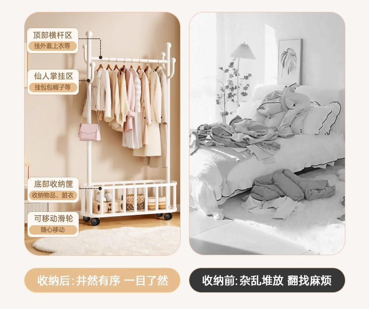 60cm cream white * upgraded and heightened mesh basket * 4 hooks + universal wheel [extra thick 25 tubes]]