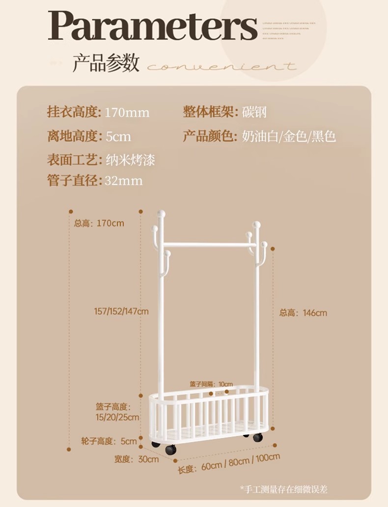 100cm cream white * storage mesh basket * 4 hooks + universal wheel [extra thick 25 tubes]]