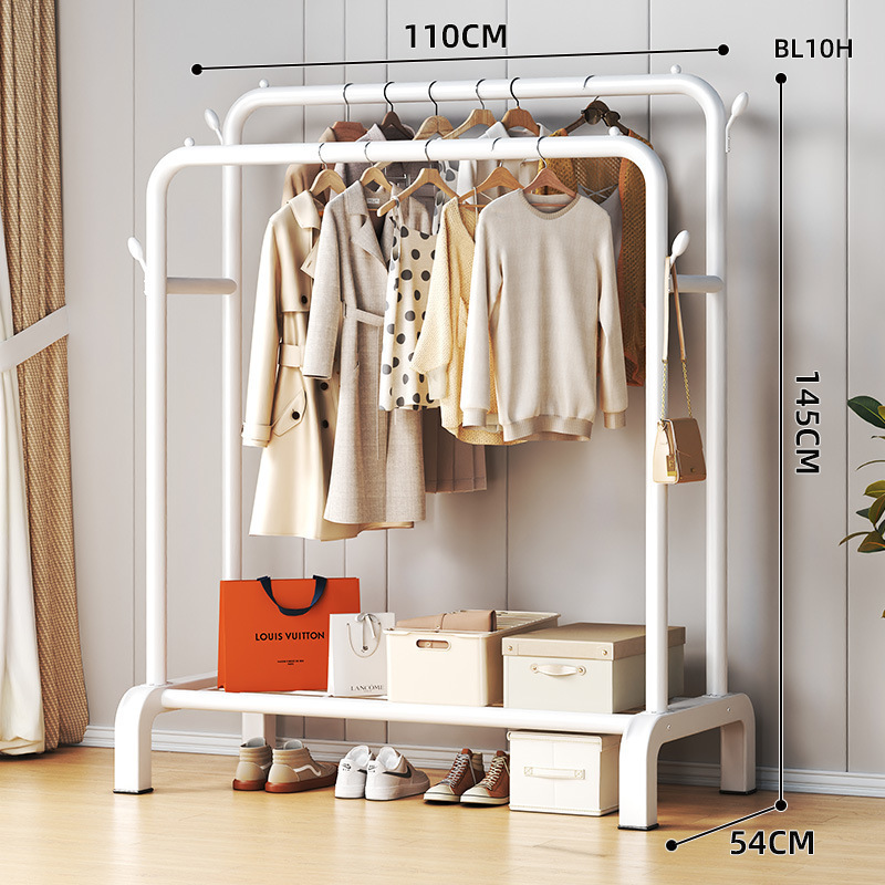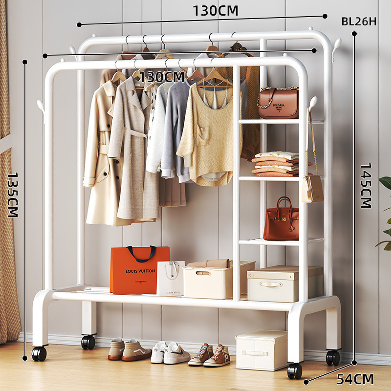 wheeled-130cm white [double rod * side storage net + double layer rack] 4 hooks