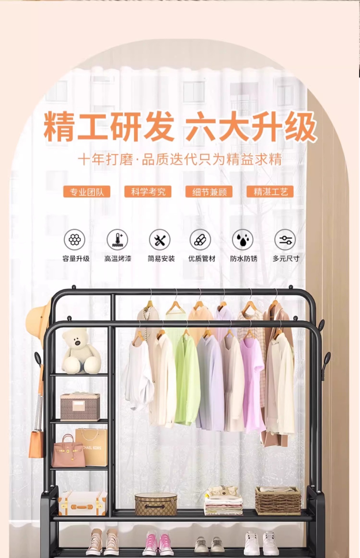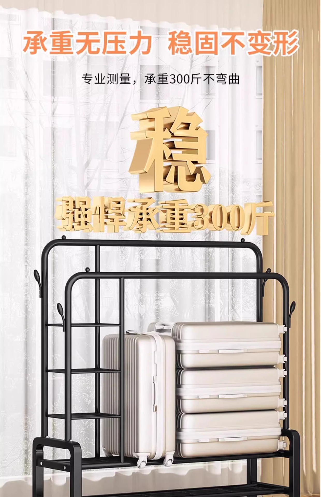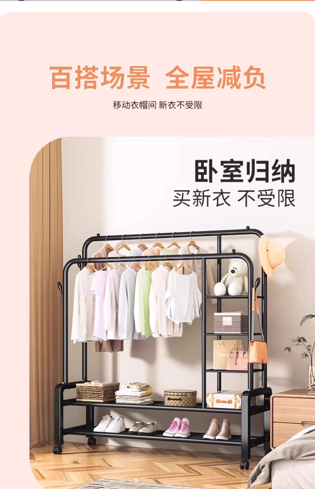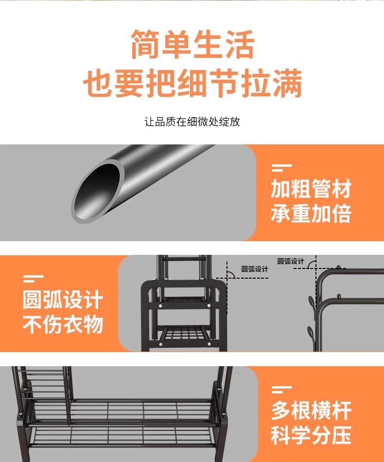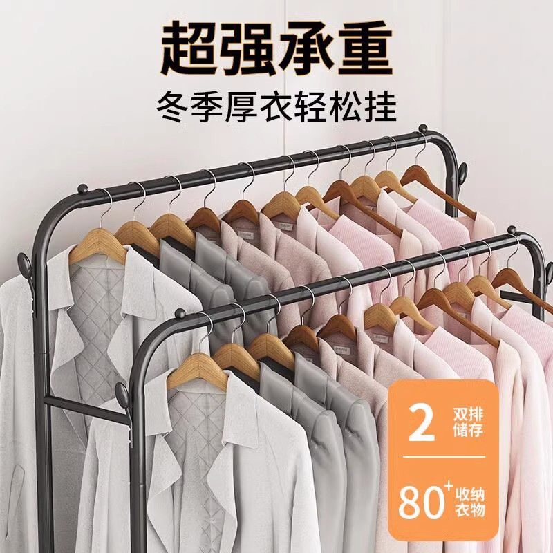 double rod * double layer 150cm black-wheeled-storage rack-4 coat hook