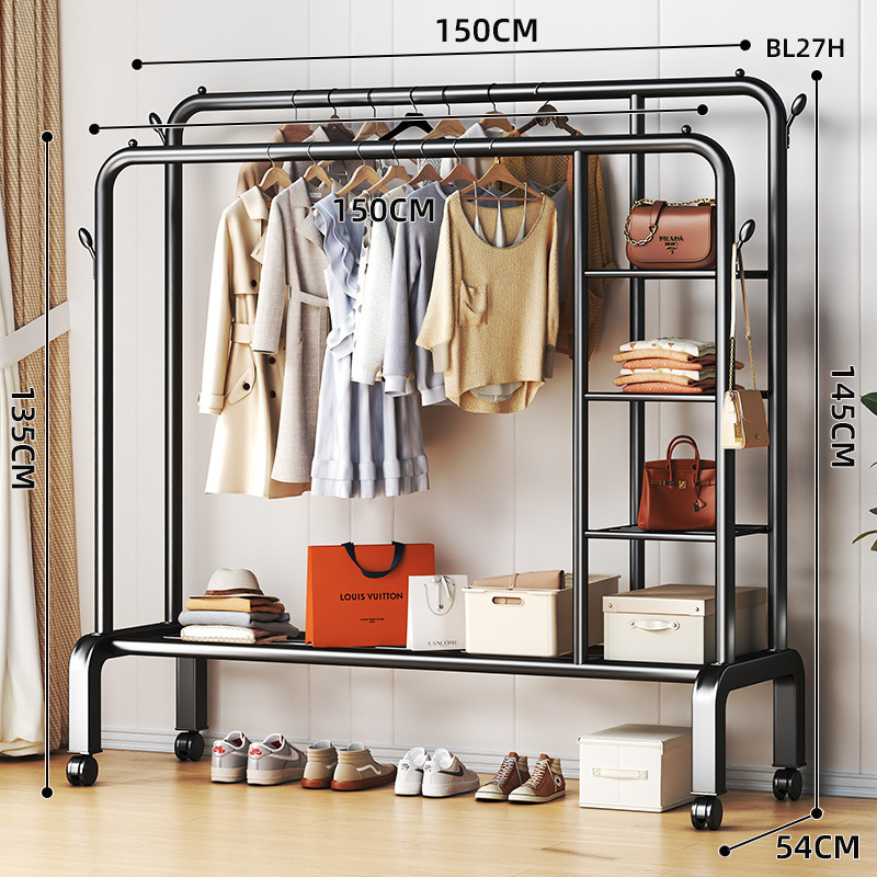 wheeled-150cm black [double rod * side storage net + double layer rack] 4 hooks