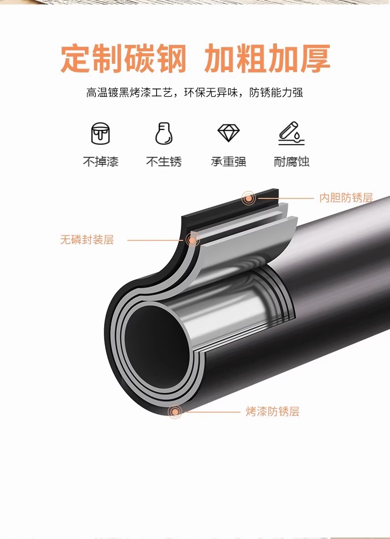 double pole 150cm black-storage rack-4 coat hook