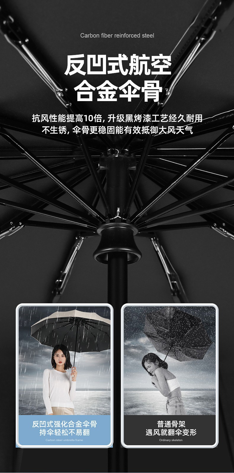 10 bone vinyl automatic reverse folding umbrella (black)