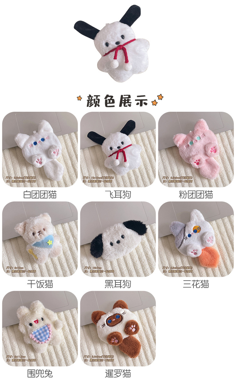 dried rice cat plush cover pouch, bib rabbit plush cover pouch, flying ear dog fur plush cover pouch