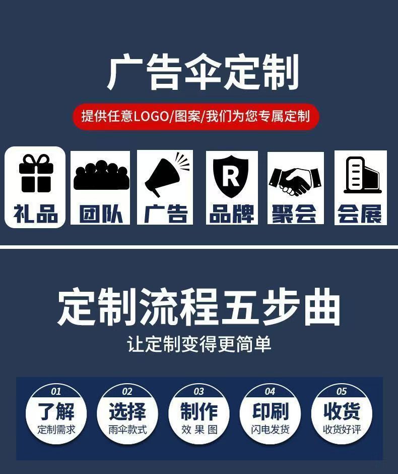 60-knob automatic black rubber umbrella-navy blue