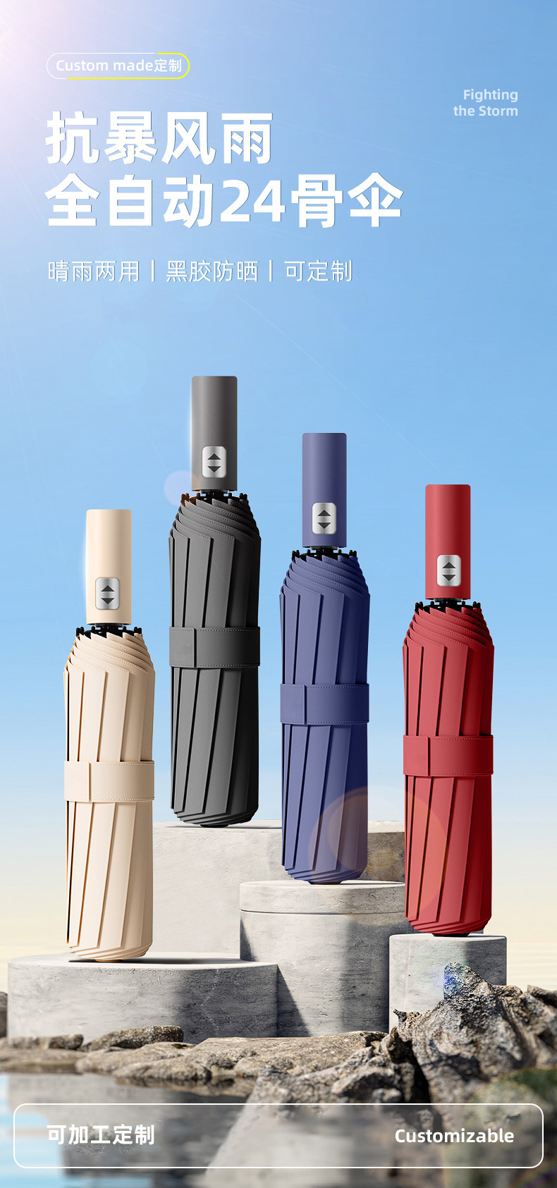 [flagship double bone] self-opening umbrella-navy blue