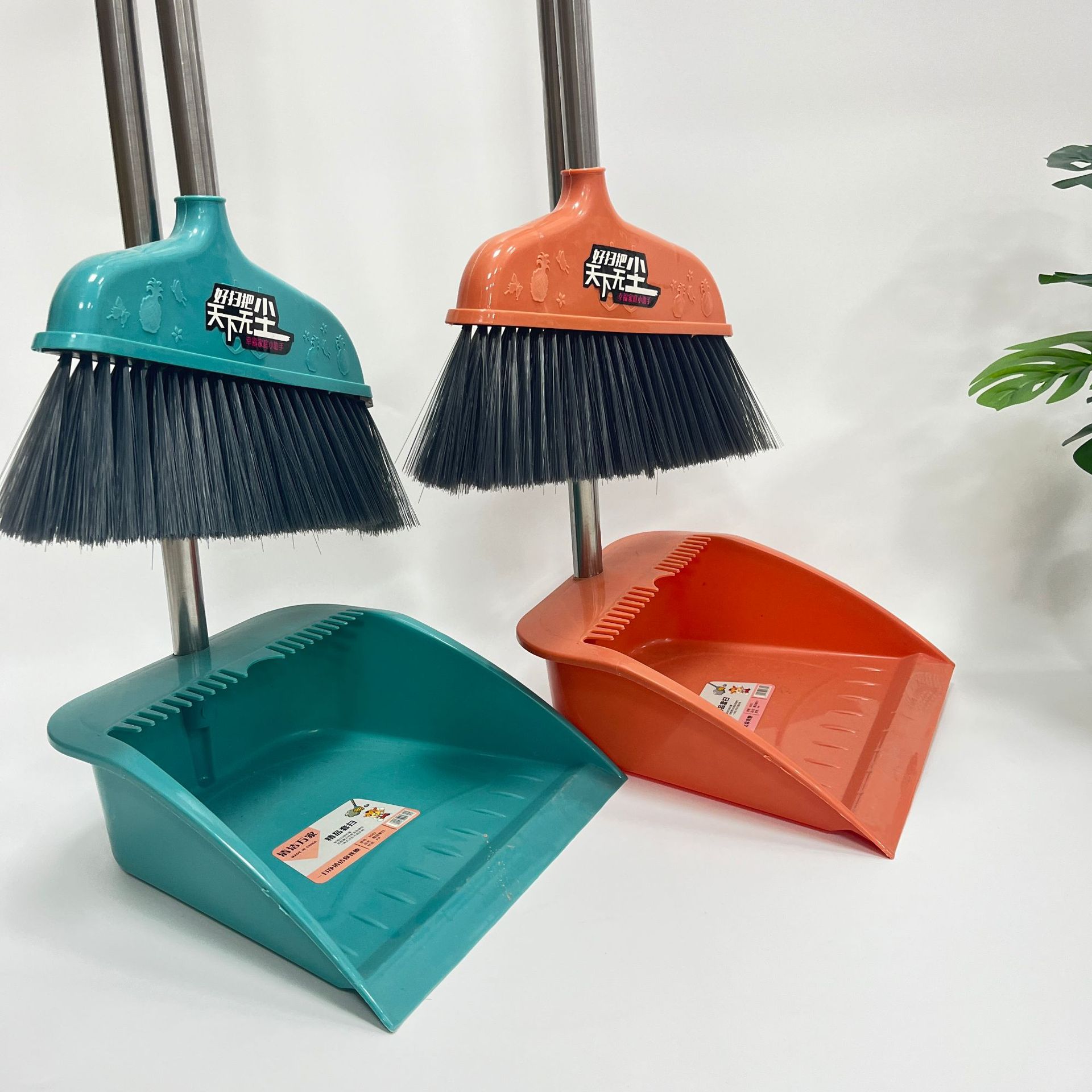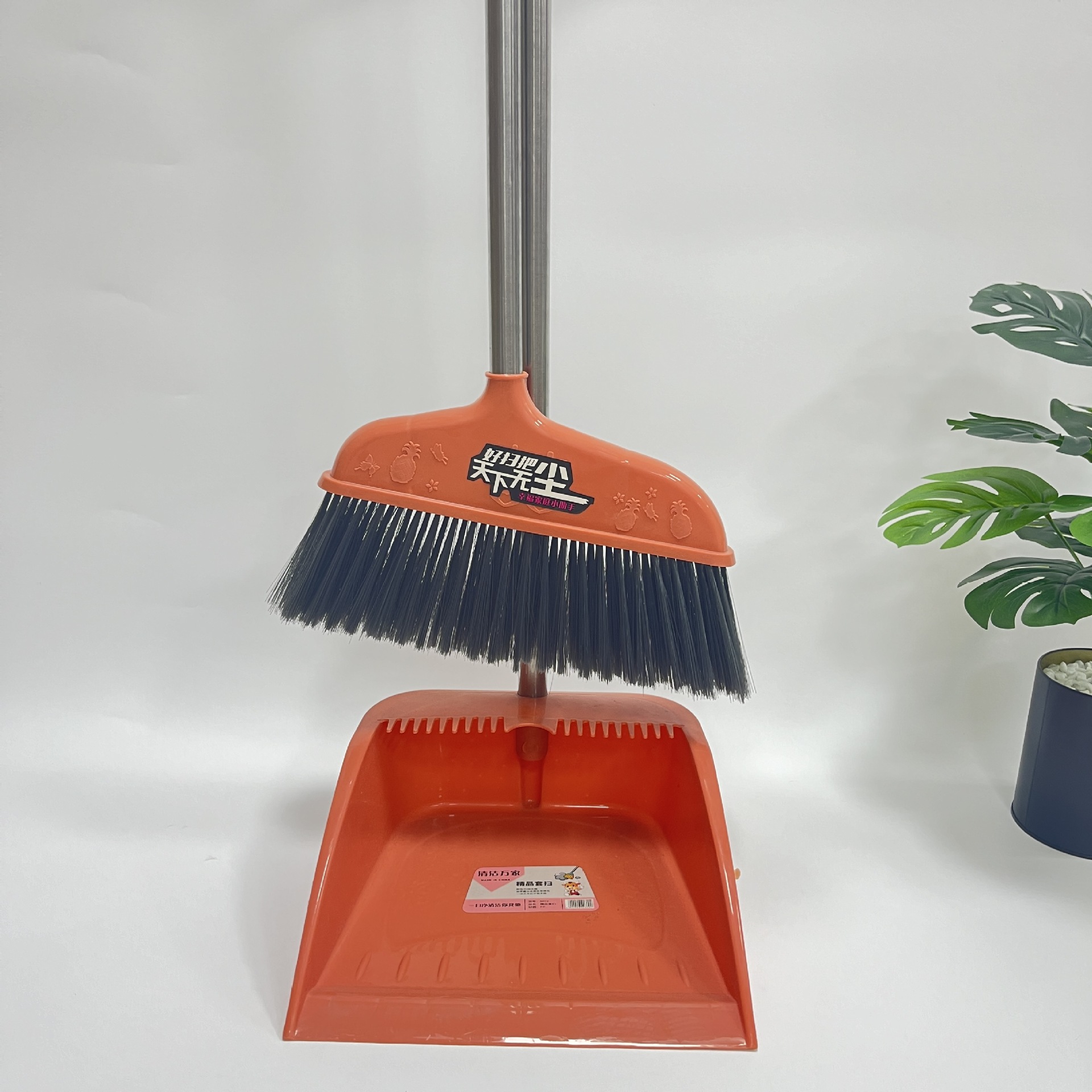 world without dust [orange] broom + dustpan