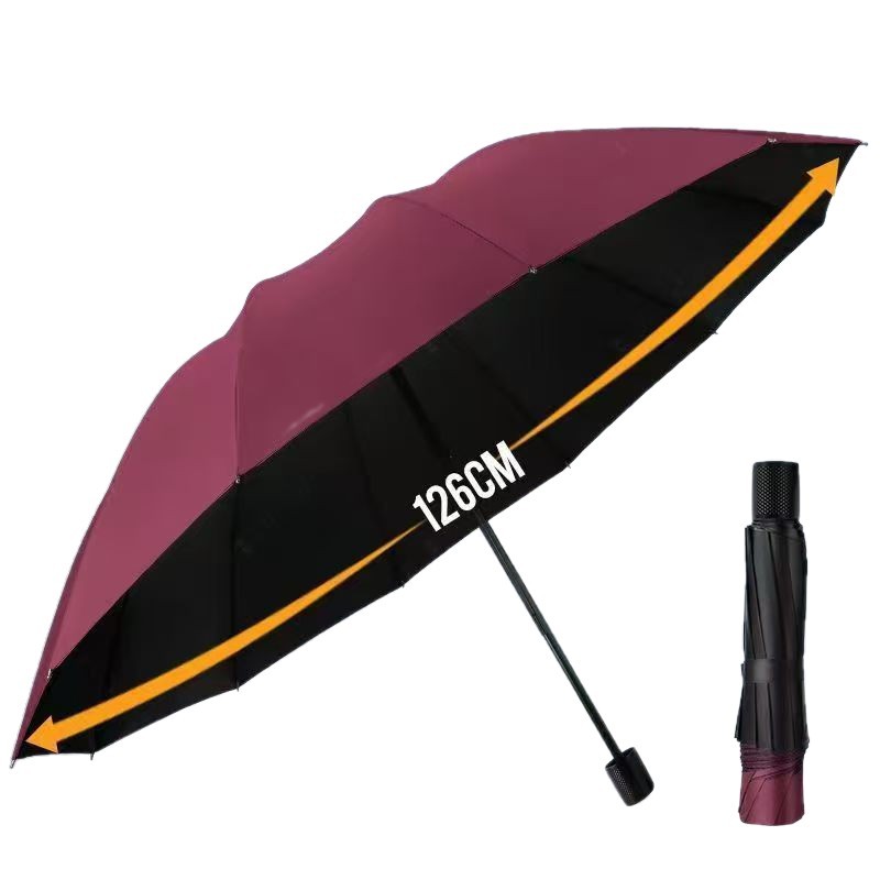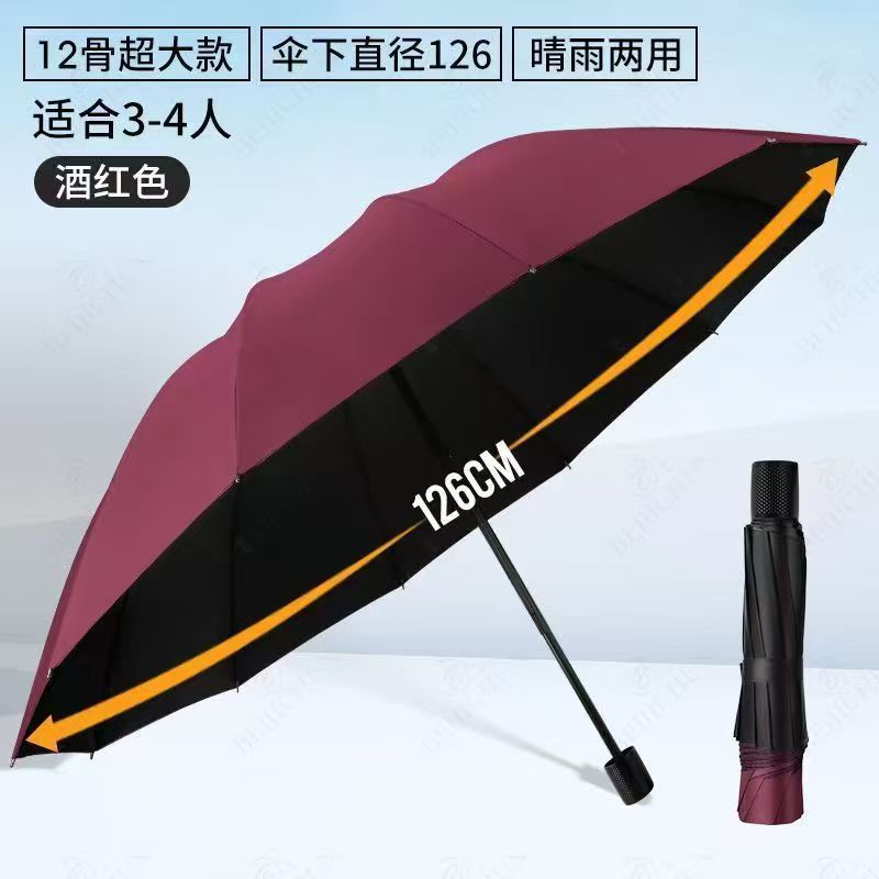 upgraded version (12-rib manual extra-large reinforced umbrella, 125cm diameter) – wine red