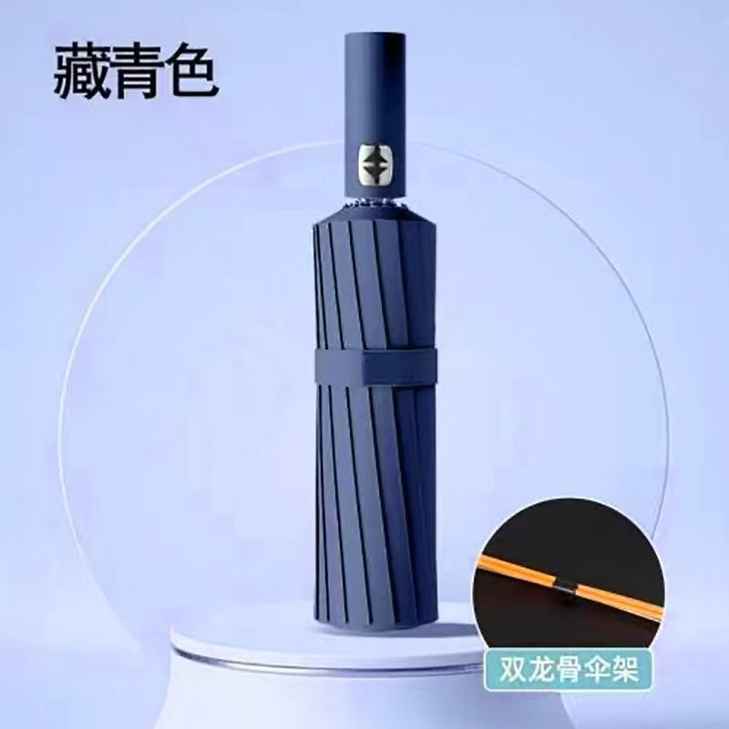 upgraded model (automatic 60-rib 3+2 reinforced black coating) umbrella—navy blue