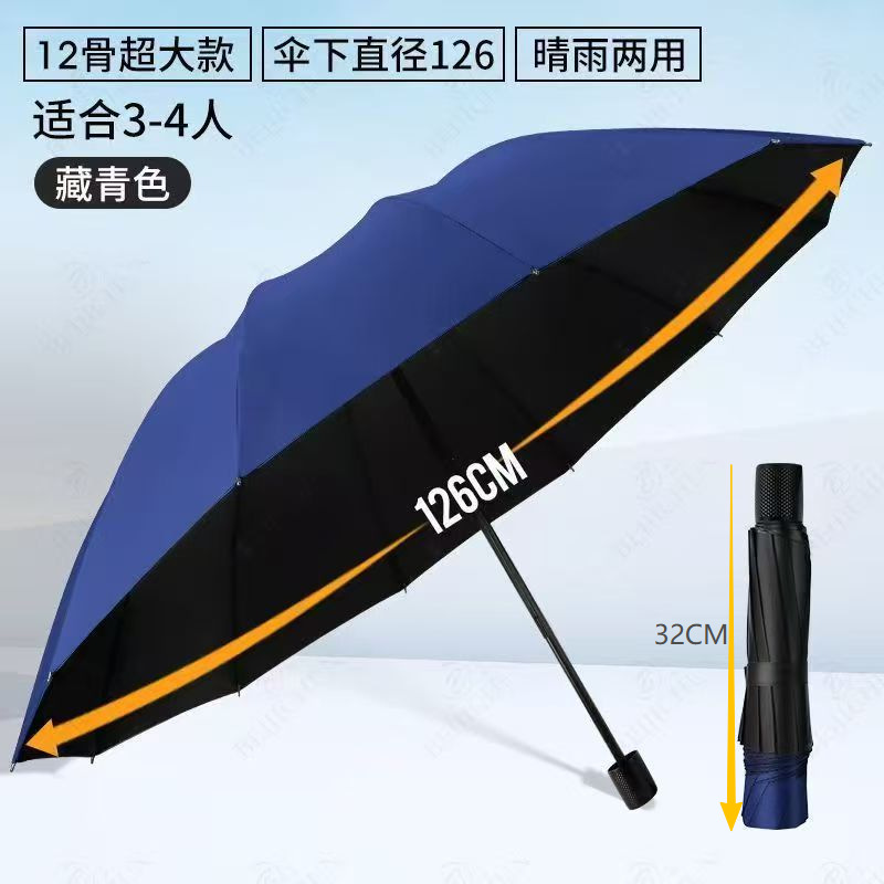 upgraded version (12-rib manual extra-large reinforced umbrella, 125cm diameter) — navy blue