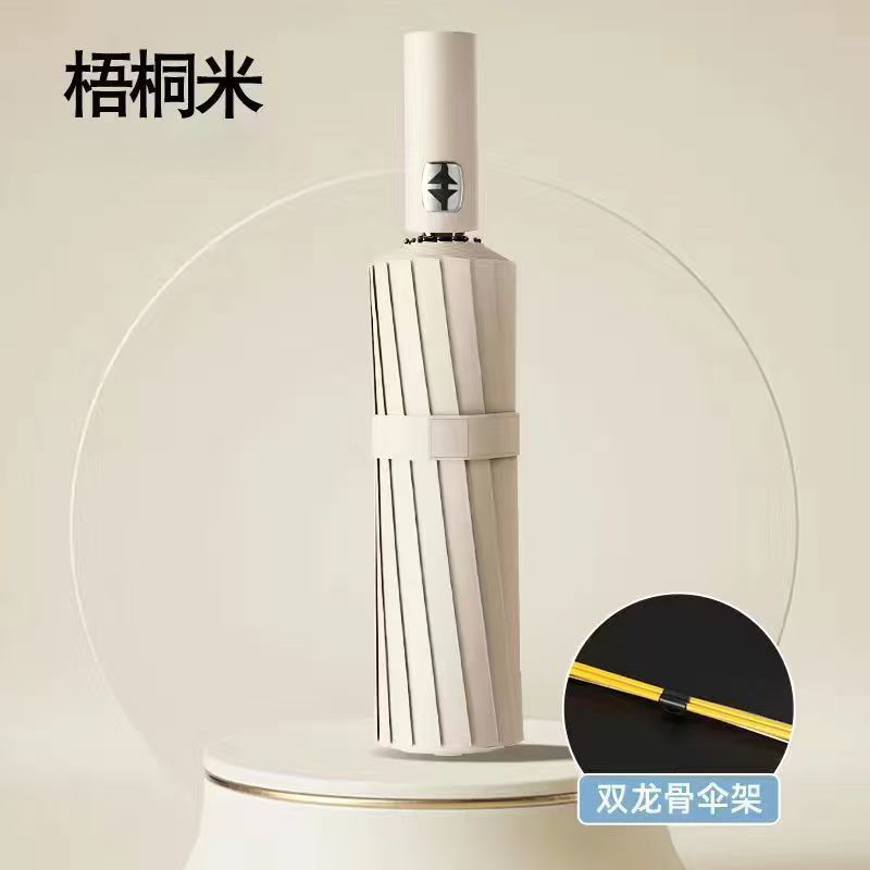 upgraded version (automatic 24-rib 2+1 reinforced black coating) all-weather umbrella — paulownia beige