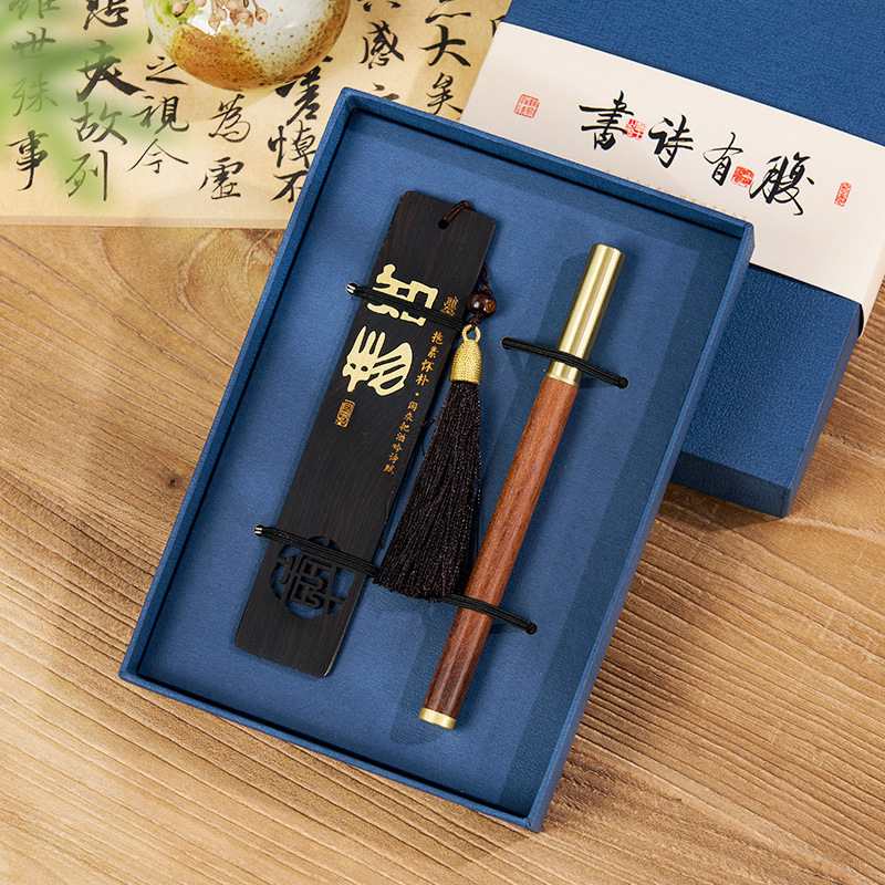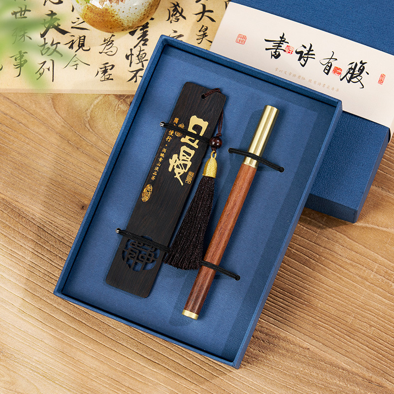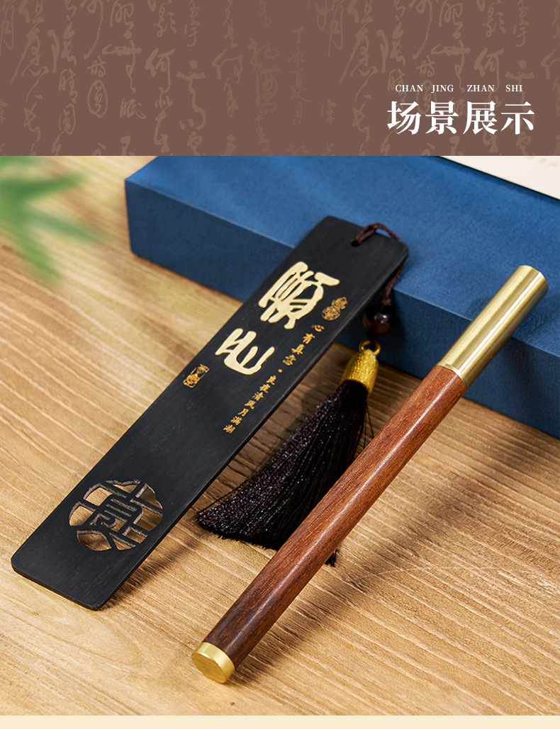shunxin/purple sandalwood copper sheet bookmark + pen