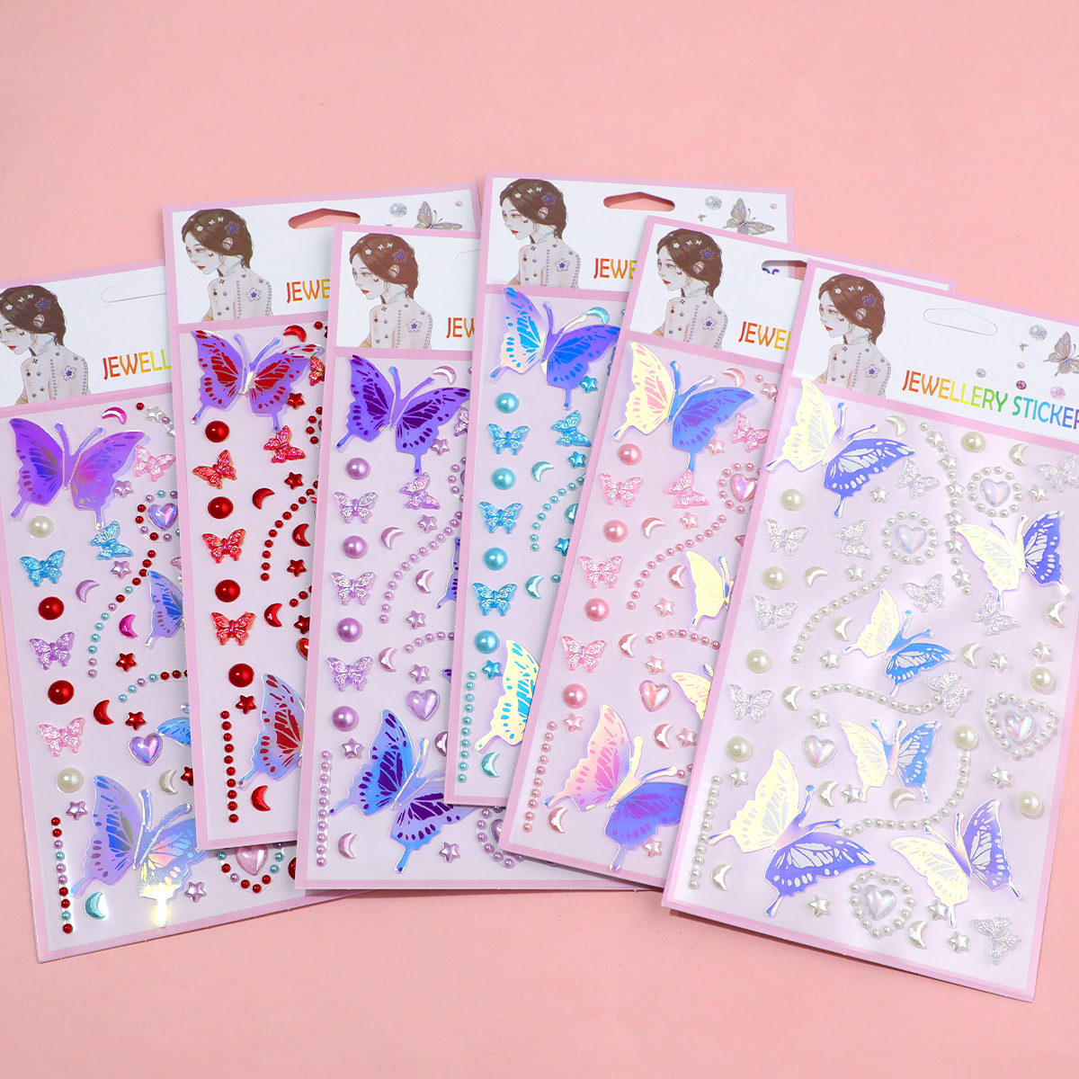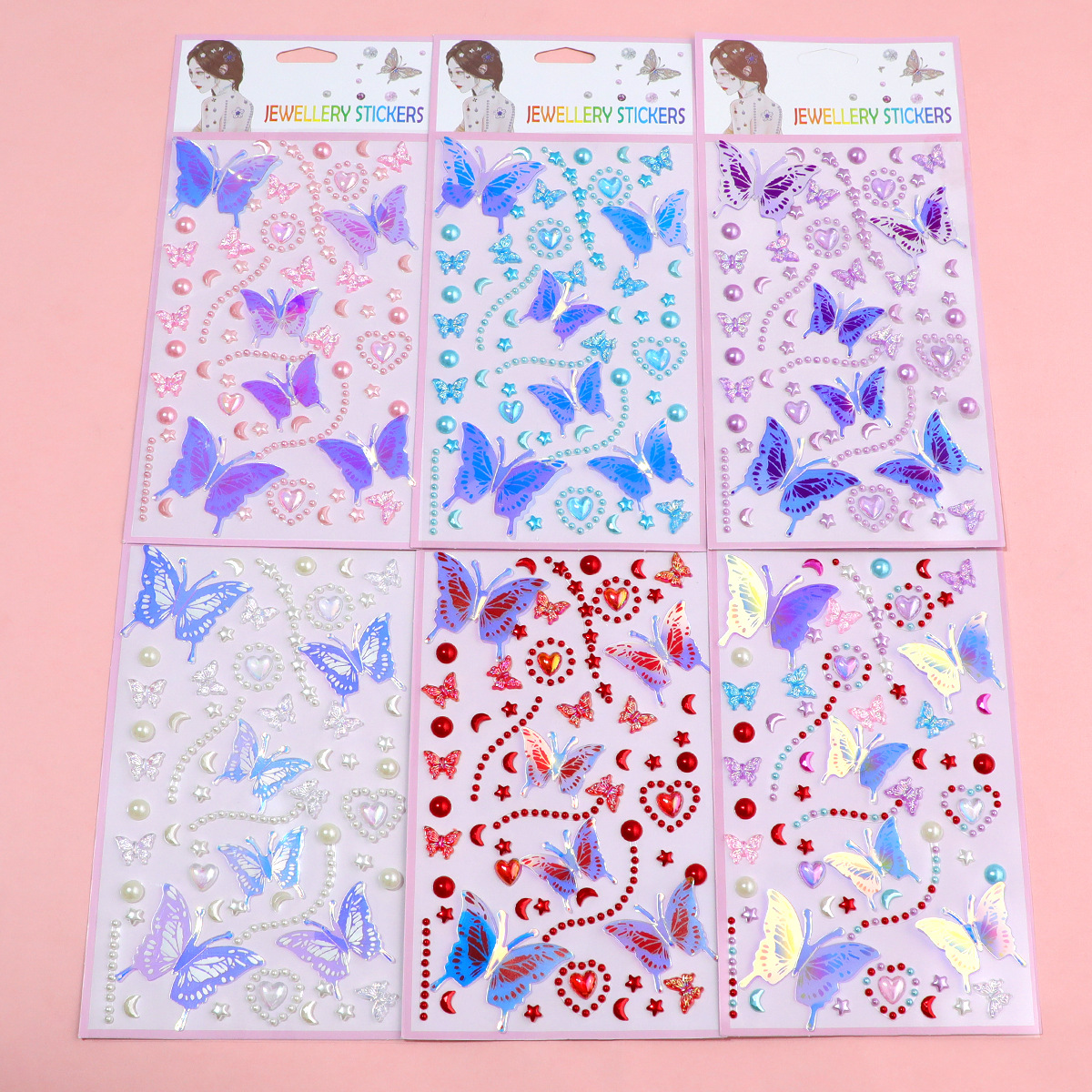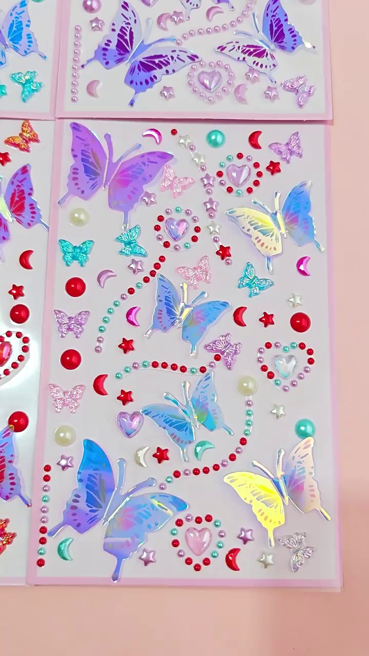 55 series-2 glittering butterfly pearl stickers (pink)
