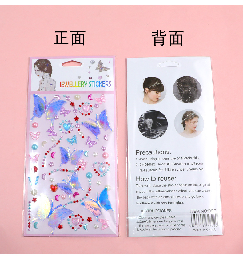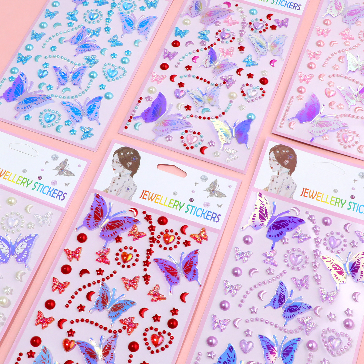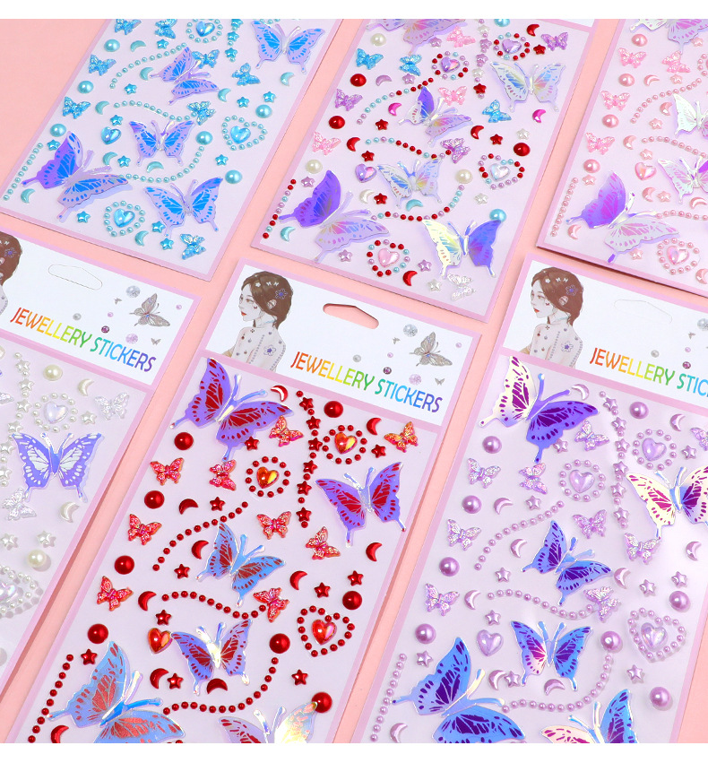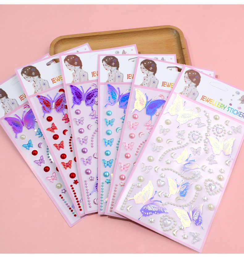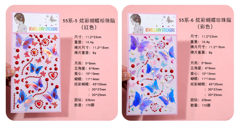 series 55-5 glittering butterfly pearl stickers (red)