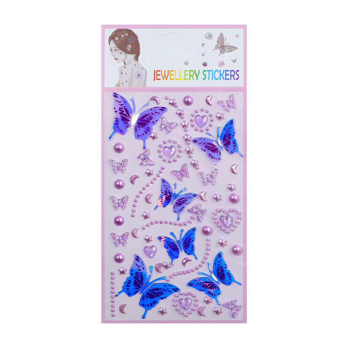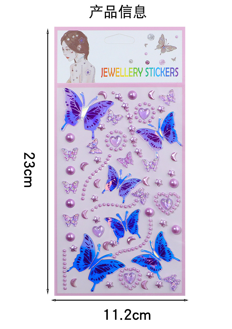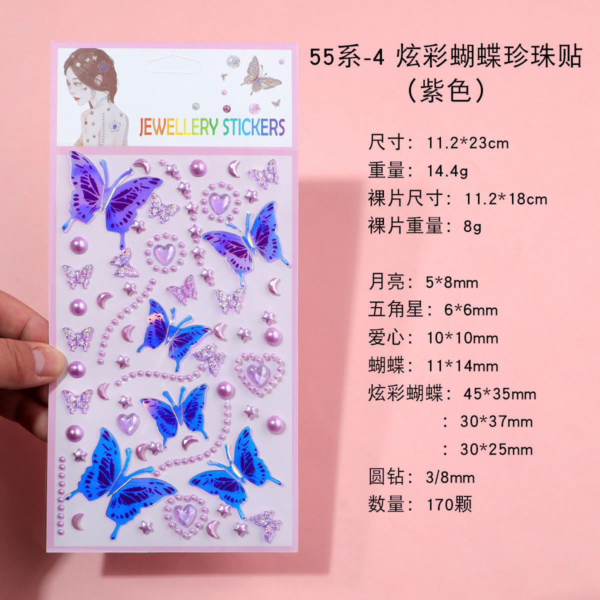 55 series-4 glittering butterfly pearl stickers (purple)