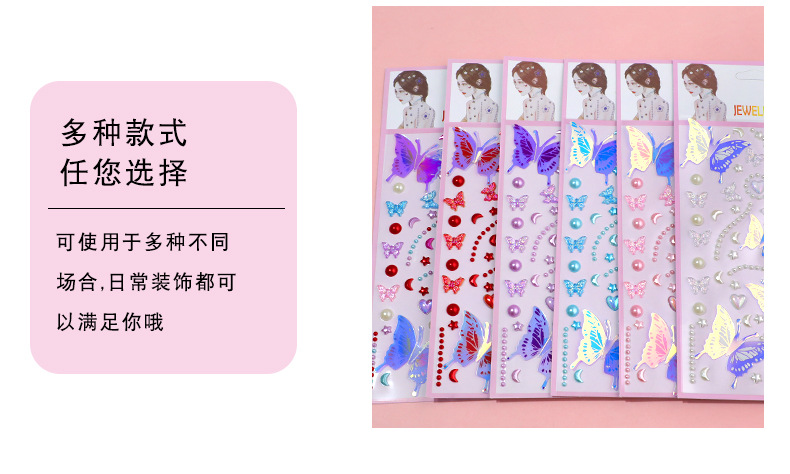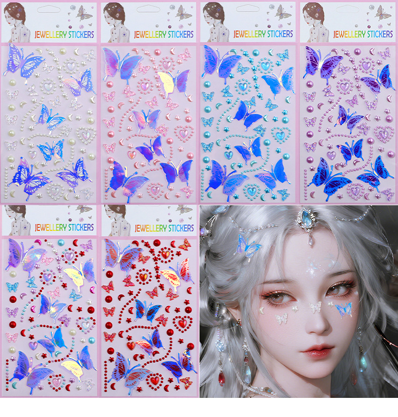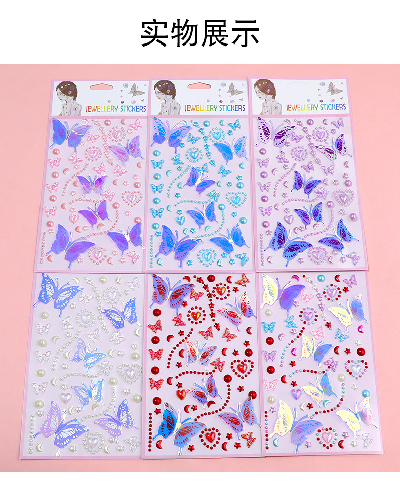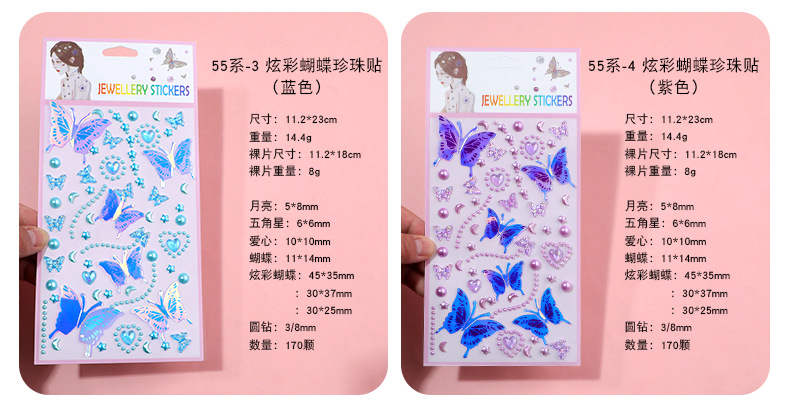 55 series-3 glittering butterfly pearl stickers (blue)