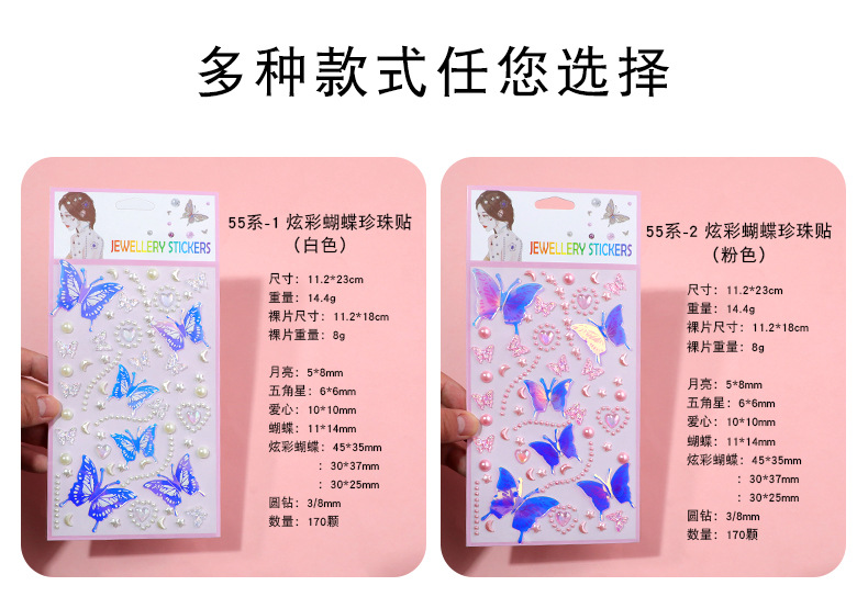 55 series-1 glittering butterfly pearl stickers (white)