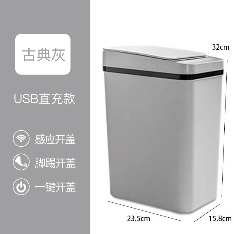 medium size, gray, usb charging + kick-to-open