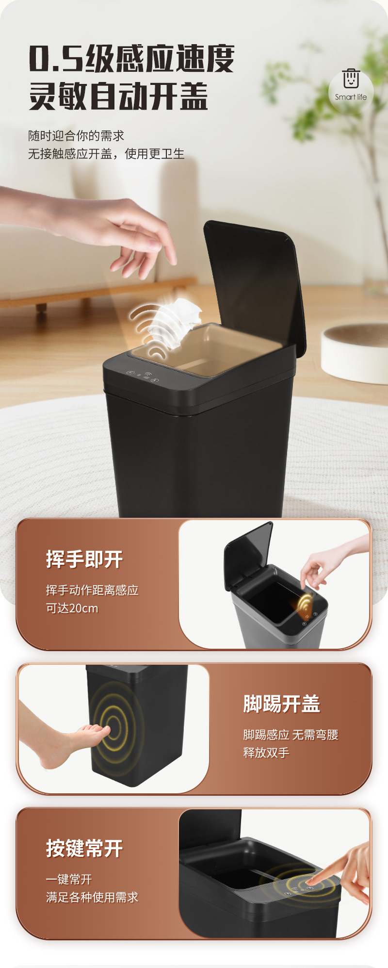 medium size, black, usb charging + kick-to-open