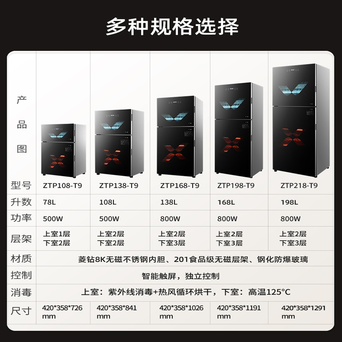198-type double-door five-layer (high temperature + ozone + drying) drain-free