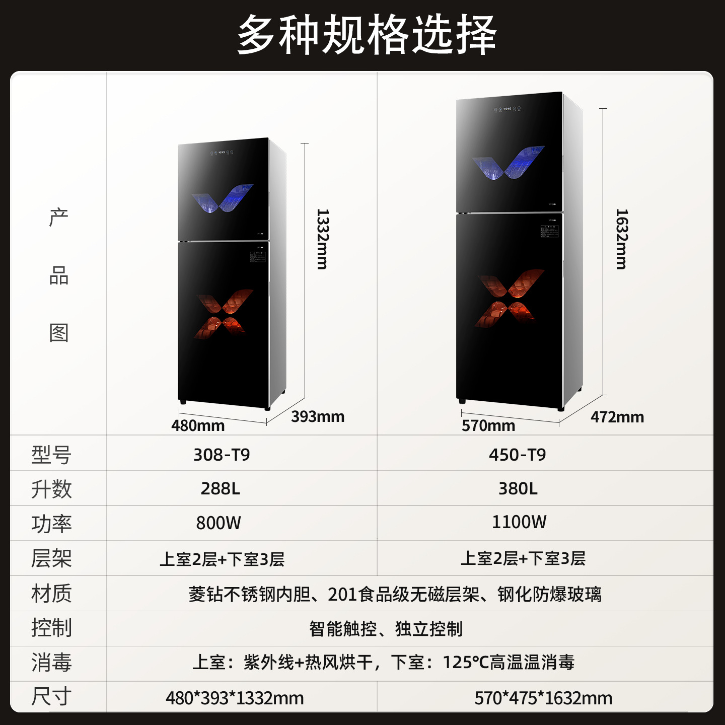 308 type double door five layers (high temperature + ozone + drying) drain-free