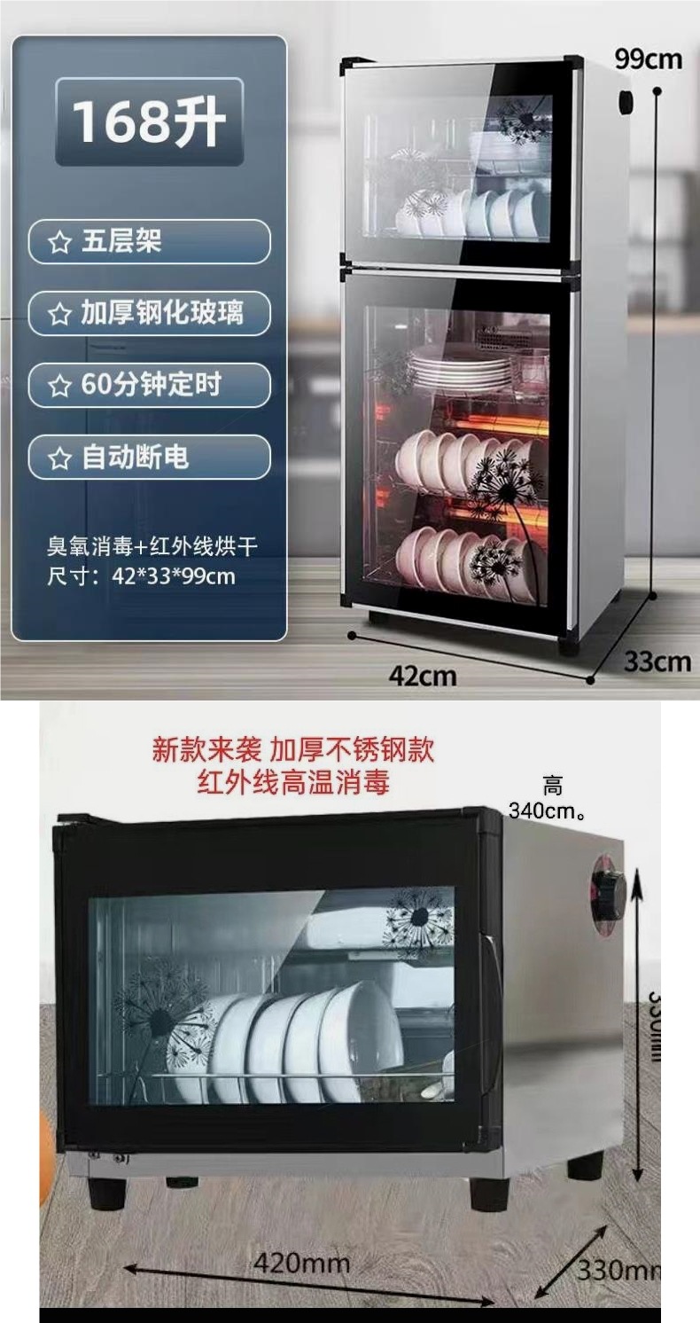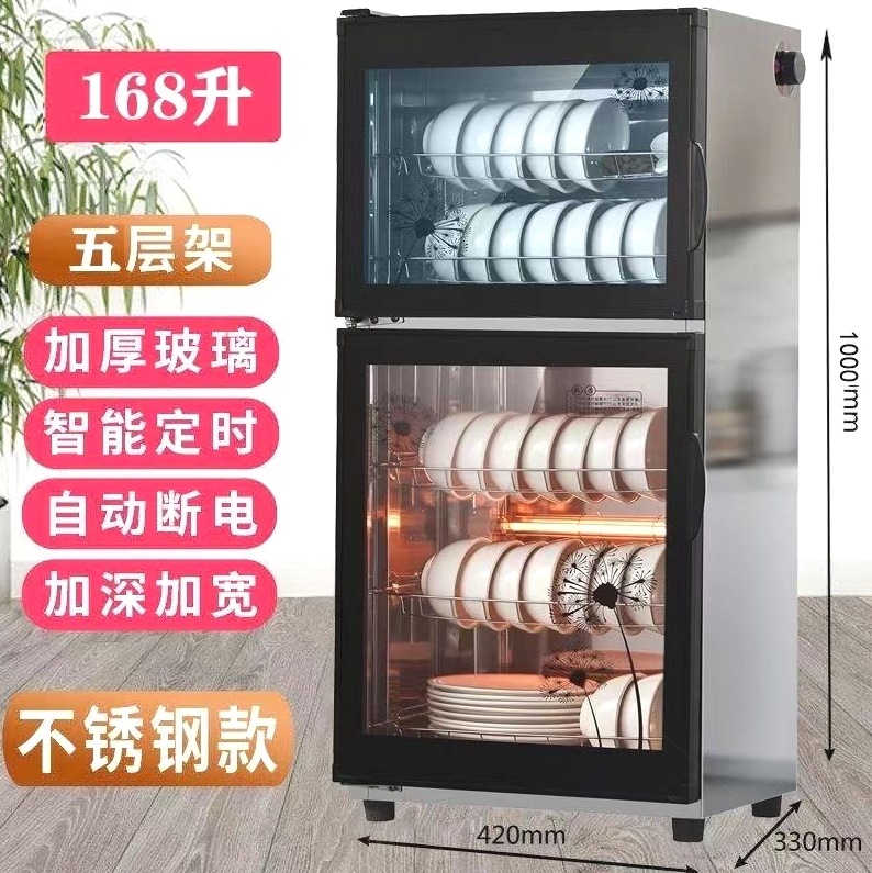 168 double-door five-layer stainless steel with free chopsticks shelf draining tray