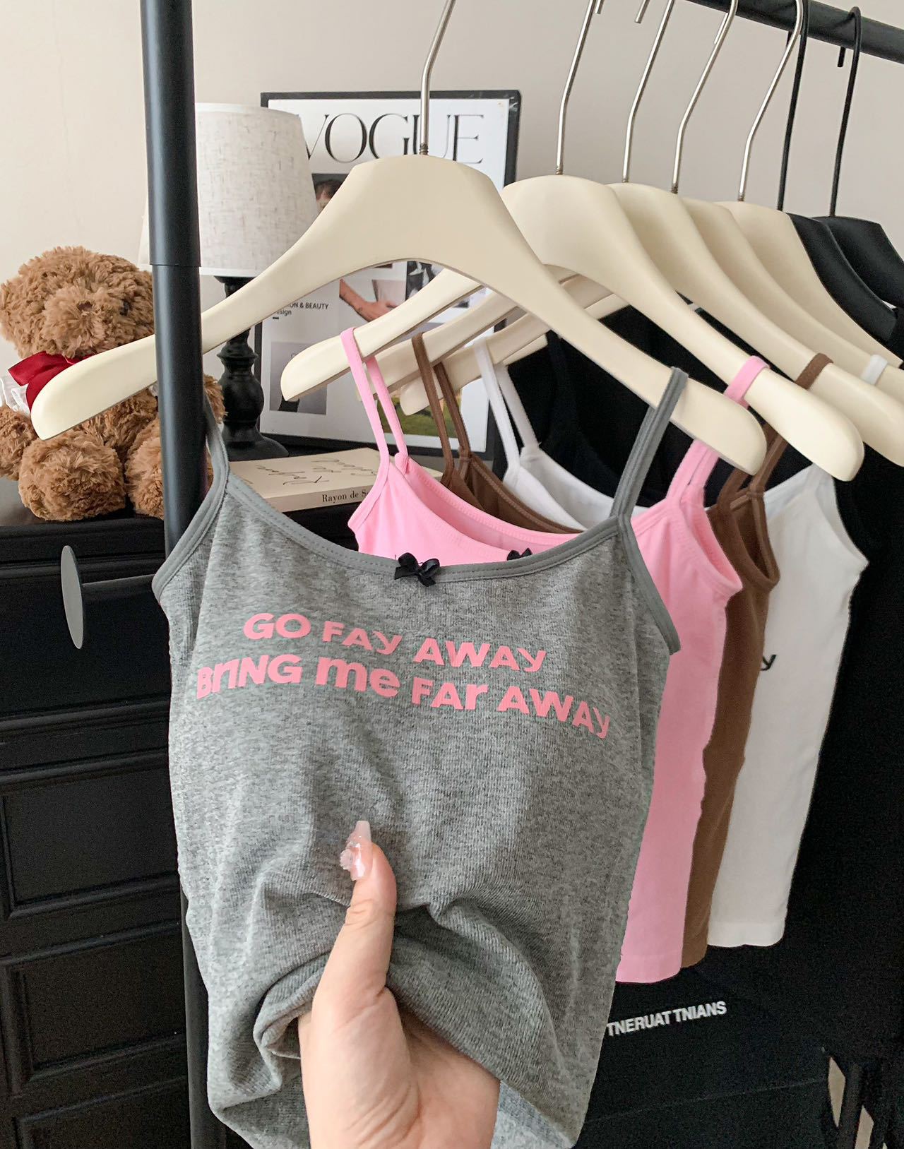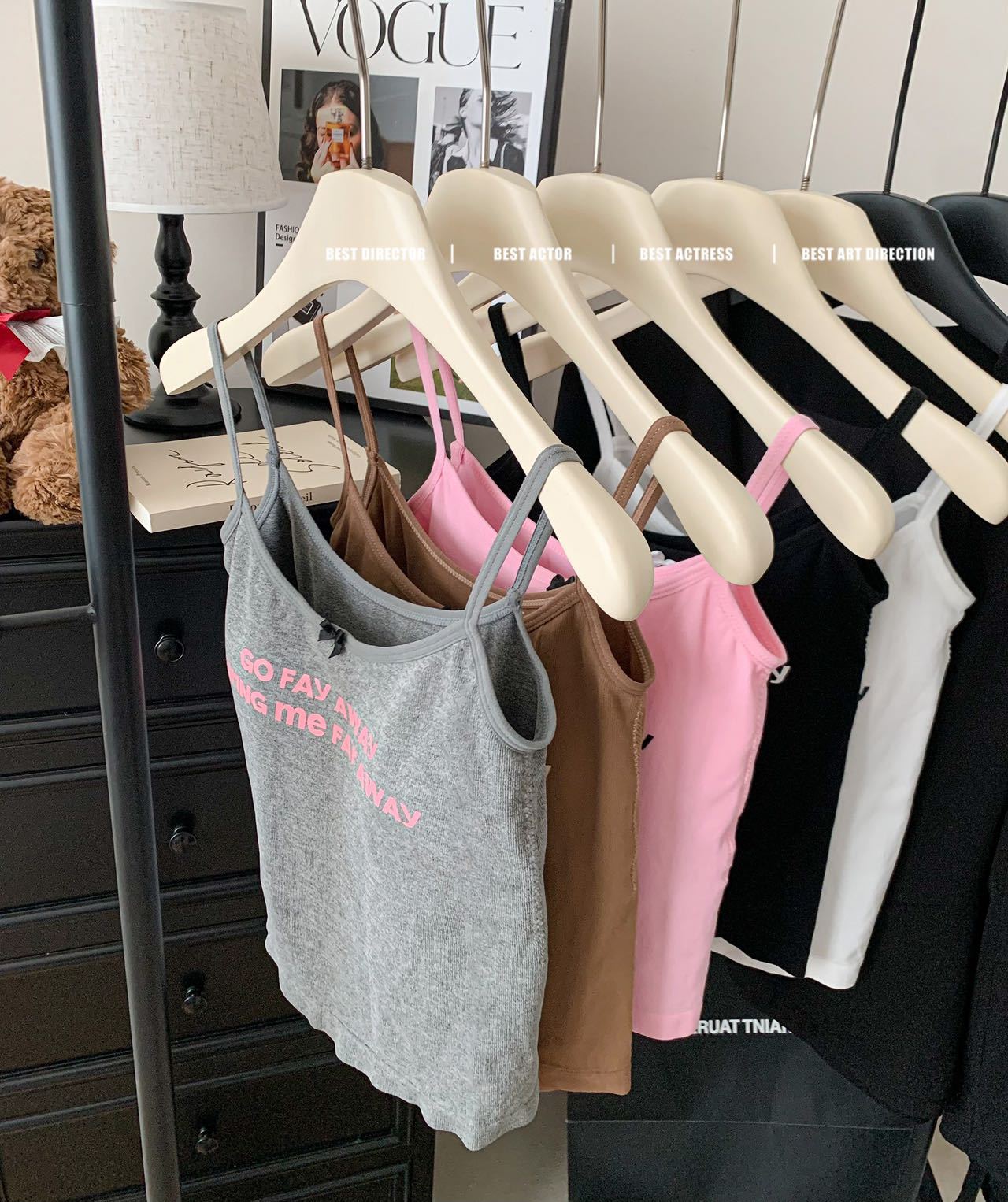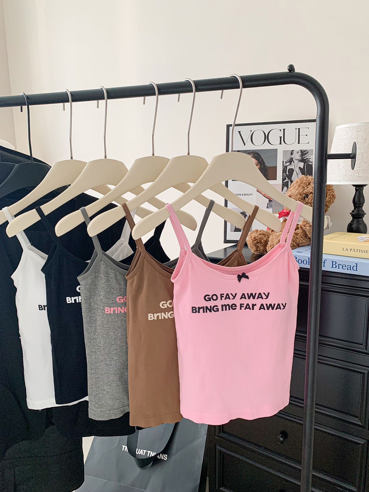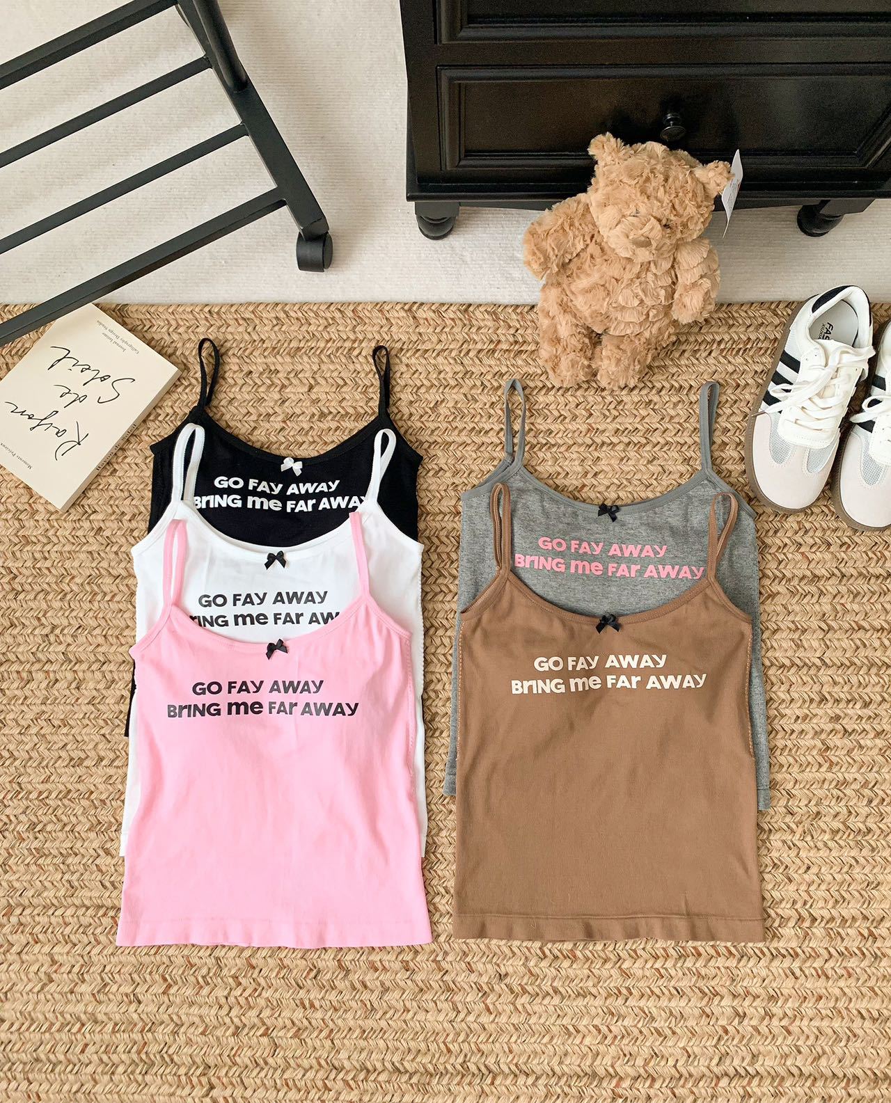 color: black, white, gray, pink, coffee