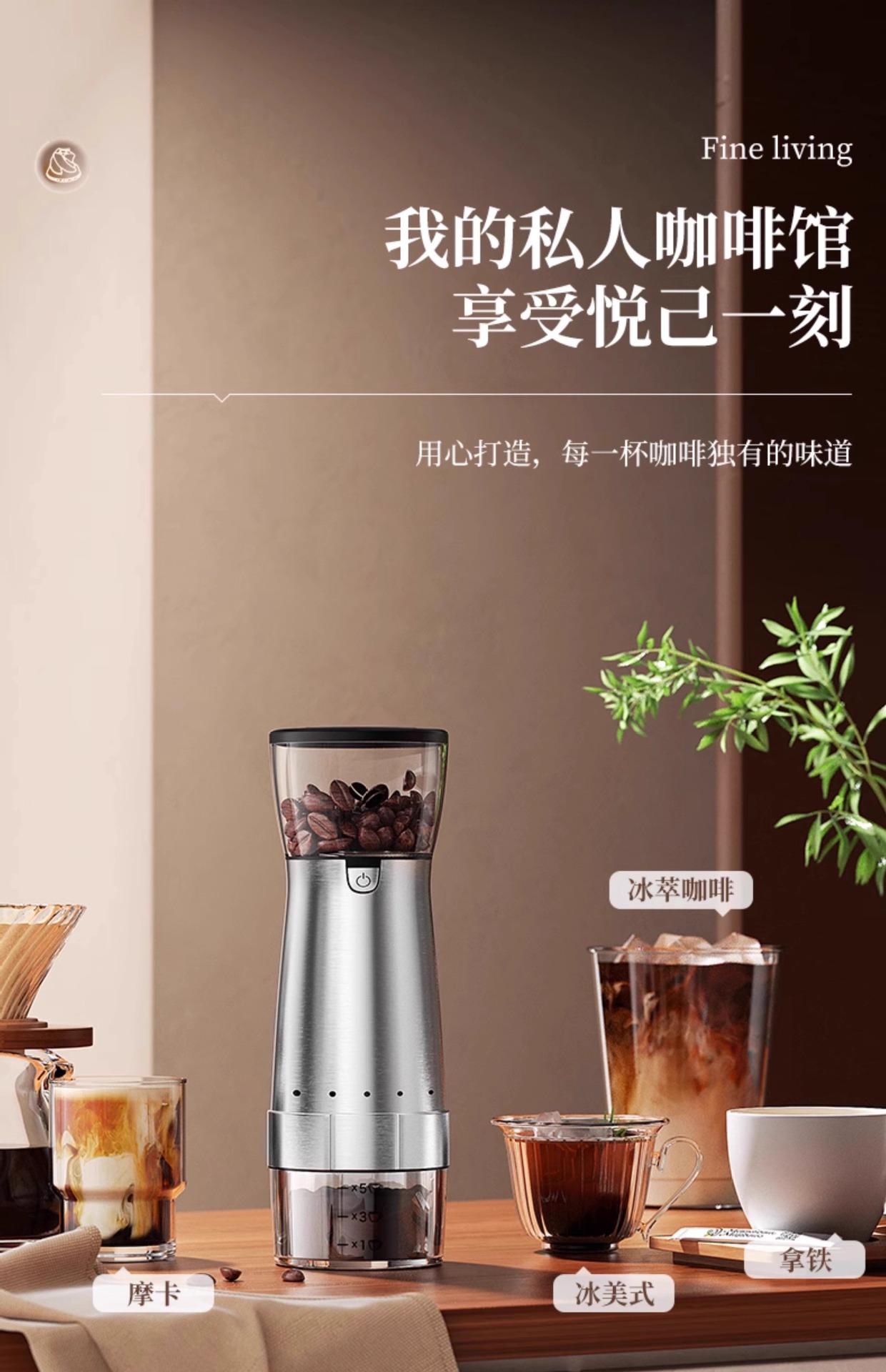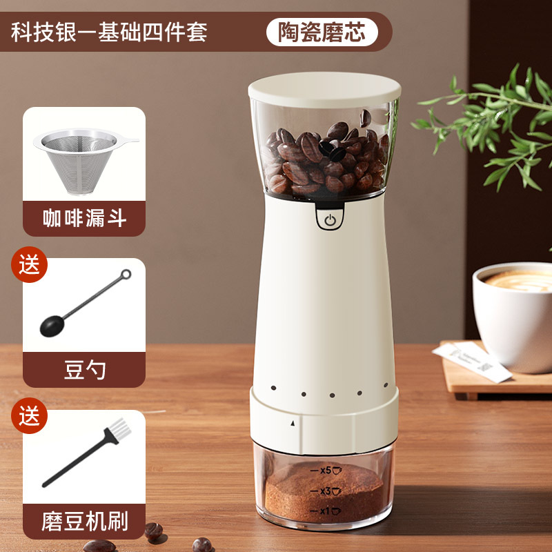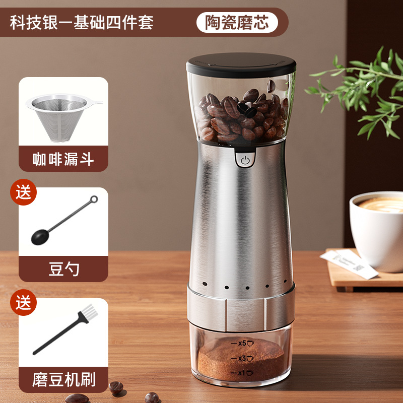 [high-tech silver basic four-piece set] coffee grinder + coffee funnel [get cleaning brush + bean spoon]]