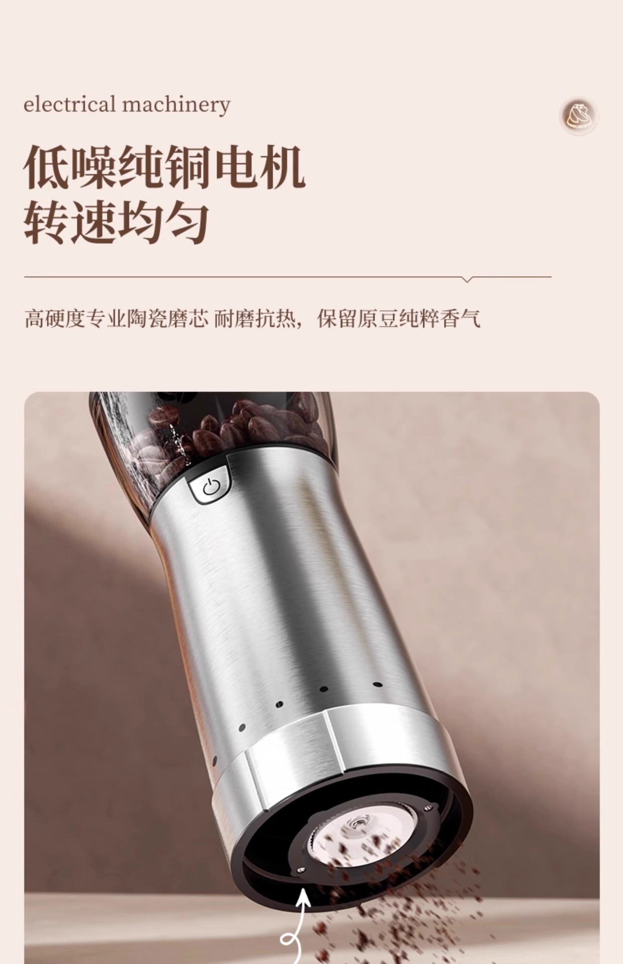 [cream white] external electric grinder [ceramic grinding core/get cleaning brush free]]